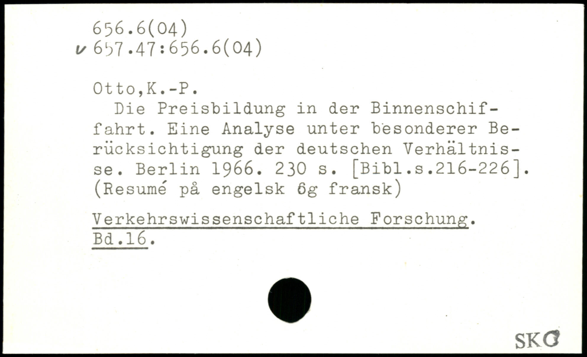 Ot to,K.-P. Die Preisbildung in der Binnenschiffahrt. Eine Analyse unter besonderer Berücksichtigung der deutschen Verhältnisse.