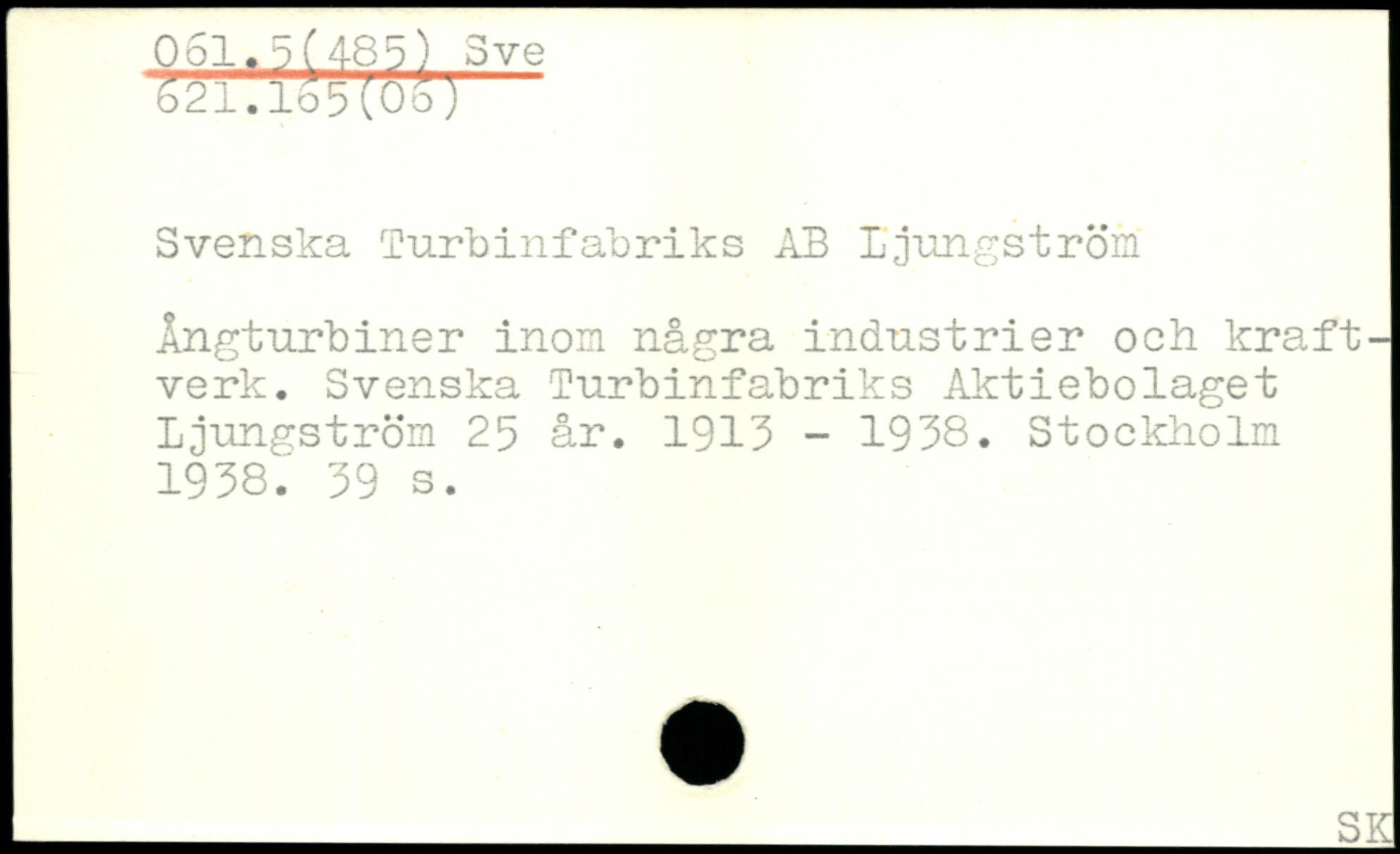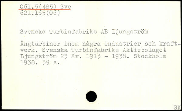 Svenska lurbinfabriks AB Ljungström Ångturbiner inom några industrier och kraftverk. Svenska Turbinfabriks Aktiebolaget Ljungström 25 år. 1913 - 1938.