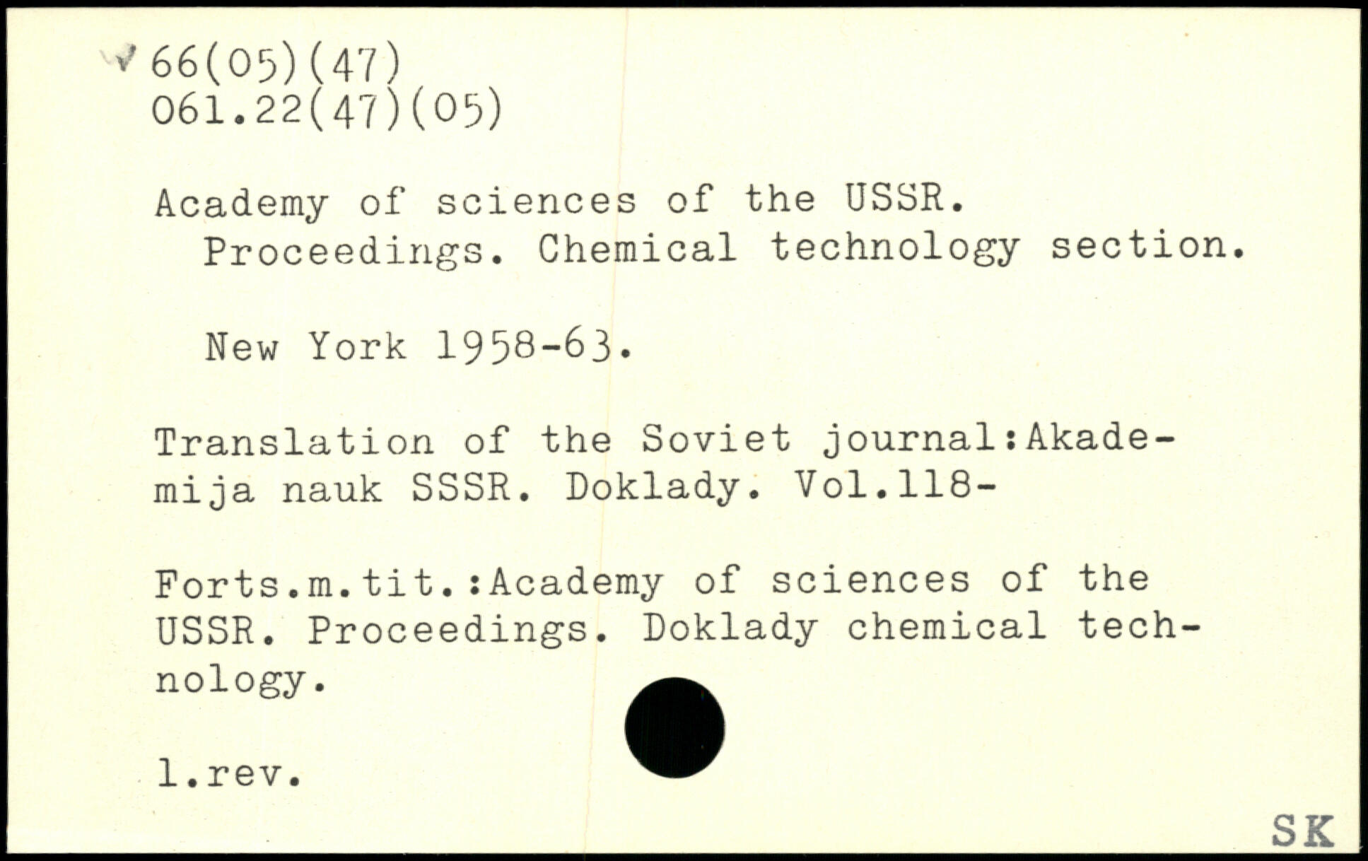 Academy of sciences of the USSR. Proceedings. Chemical technology section.
