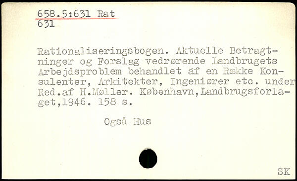 Hationaliseringsbogen. Aktuelle Betragtninger og Forslag vedrørende landbrugets Arbejdsproblem behandlet åf en Hække Konsulenter, Arkitekter, Ingeniører etc. under Hed. af H.Møller. København, landbrugsf orla-get,1946.