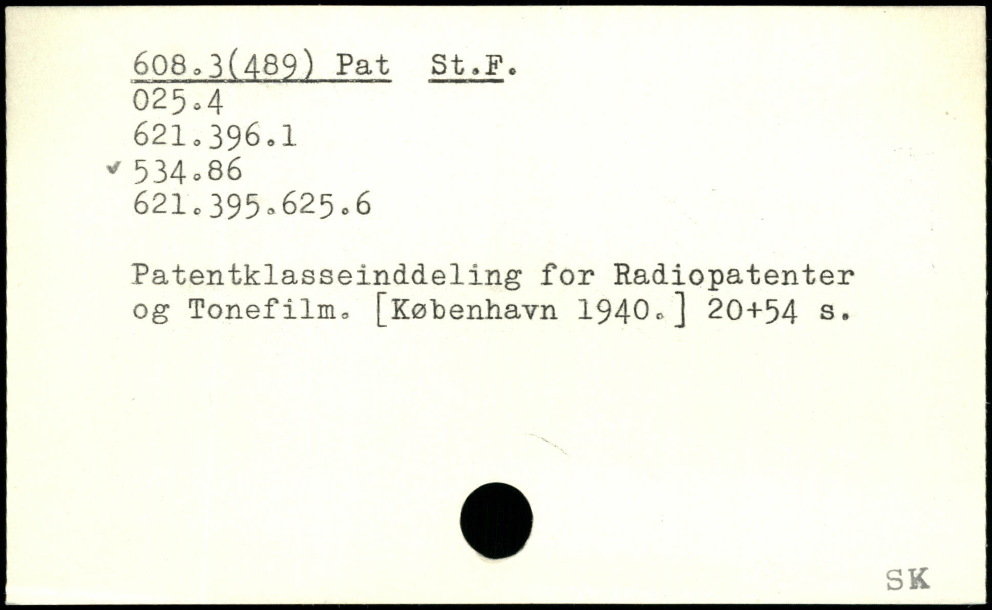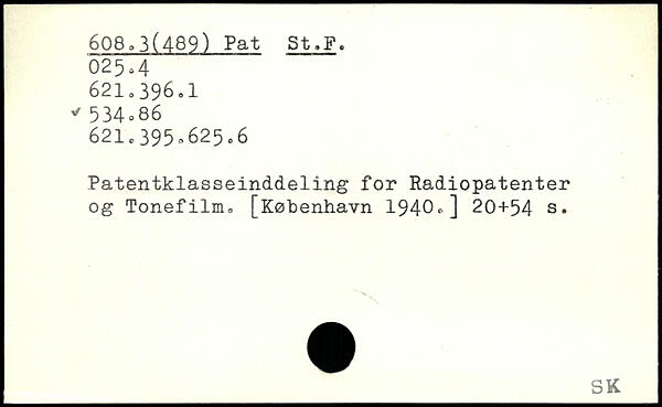 Patentklasseinddeling for Radiopatenter og Tonefilm.