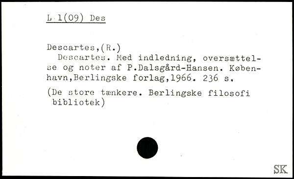 Descartes. Med indledning, oversættelse og noter af P.Dalsgård-Hansen.