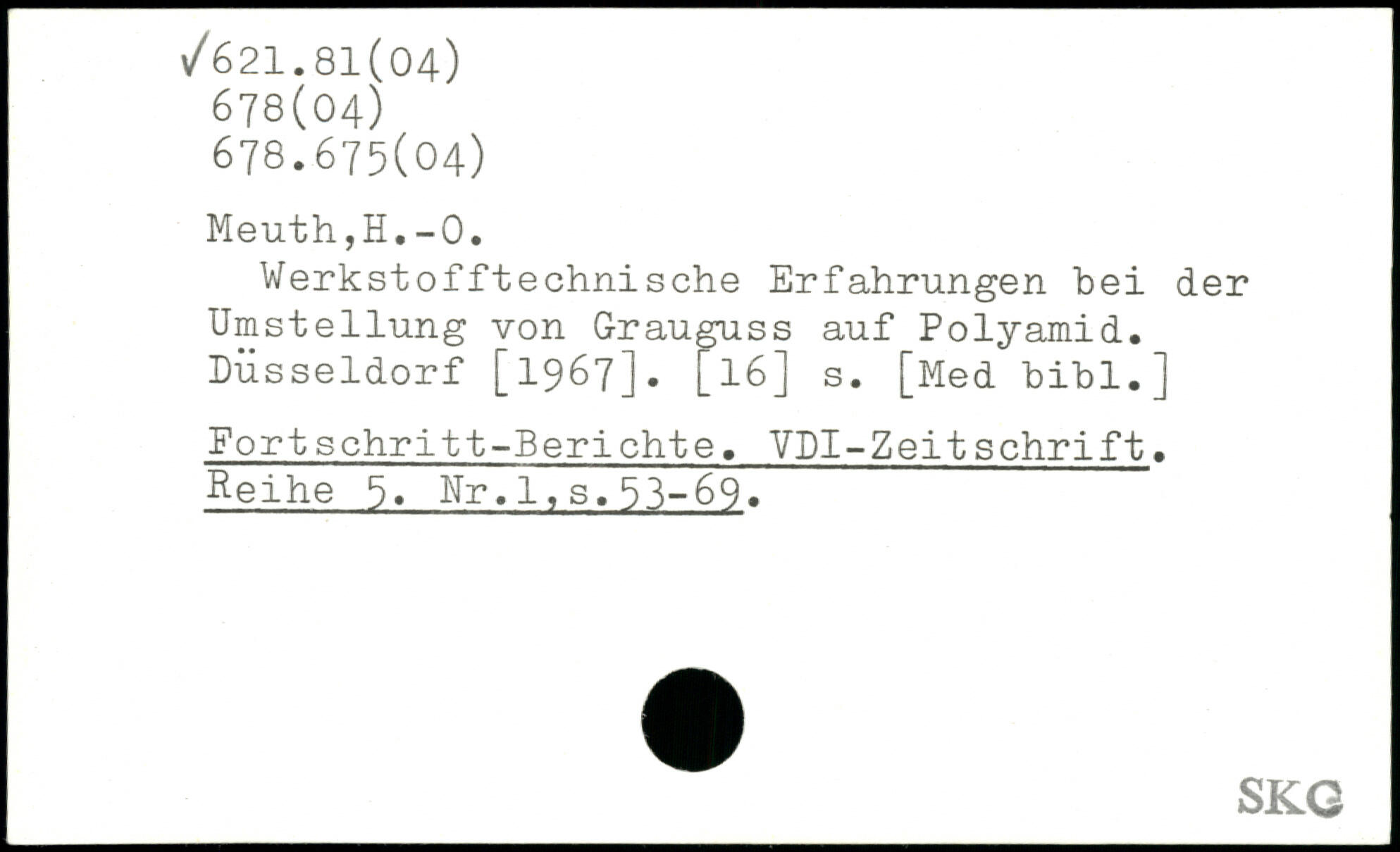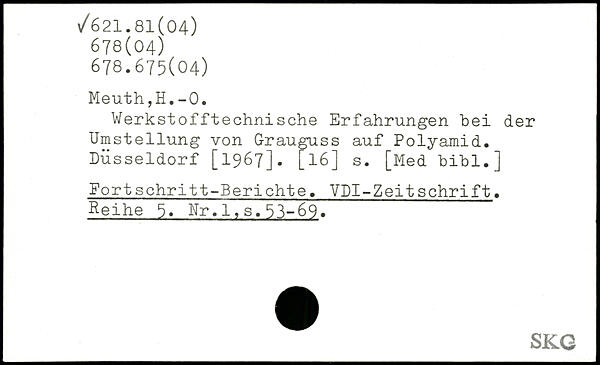 Werkstofftechnisehe Erfahrungen bei der Umstellung von Grauguss auf Polyamid. Düsseldorf [1967]. [16] s. [Med bibl.] Port sehritt-Berichte, YDI-Zeit schrift. Reihe Nr,1,s.53-69.