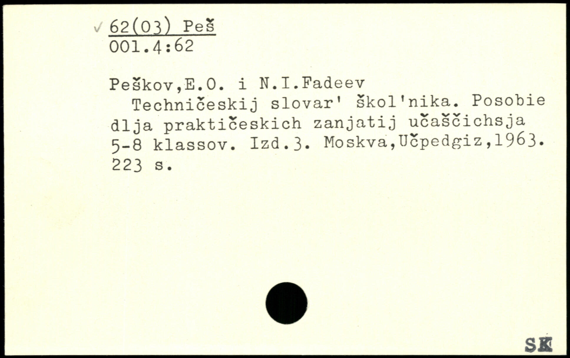 Techniceskij slovar' skol'nika. Posobie dlja prakticeskich zanjatij ucascichsja 5-8 klassov. Izd.3.