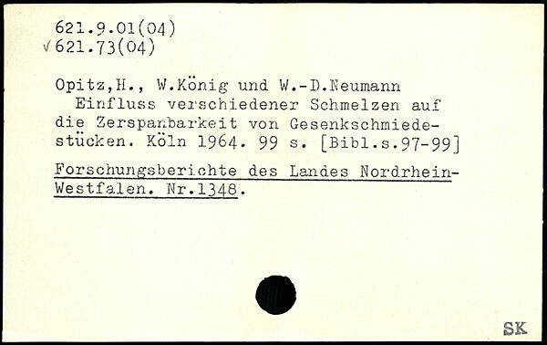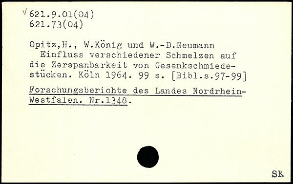 Opitz,H., W.König und W.-D.Neumann Einfluss verschiedener Schmelzen auf die Zerspanbarkeit von Gesenkschmiedestücken.