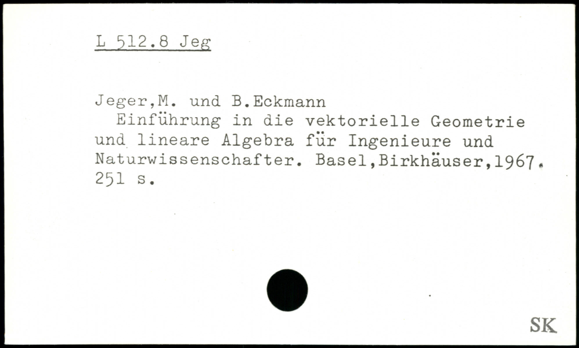 Einführung in die vektorielle Geometrie und lineare Algebra für Ingenieure und Naturwissenschafter.