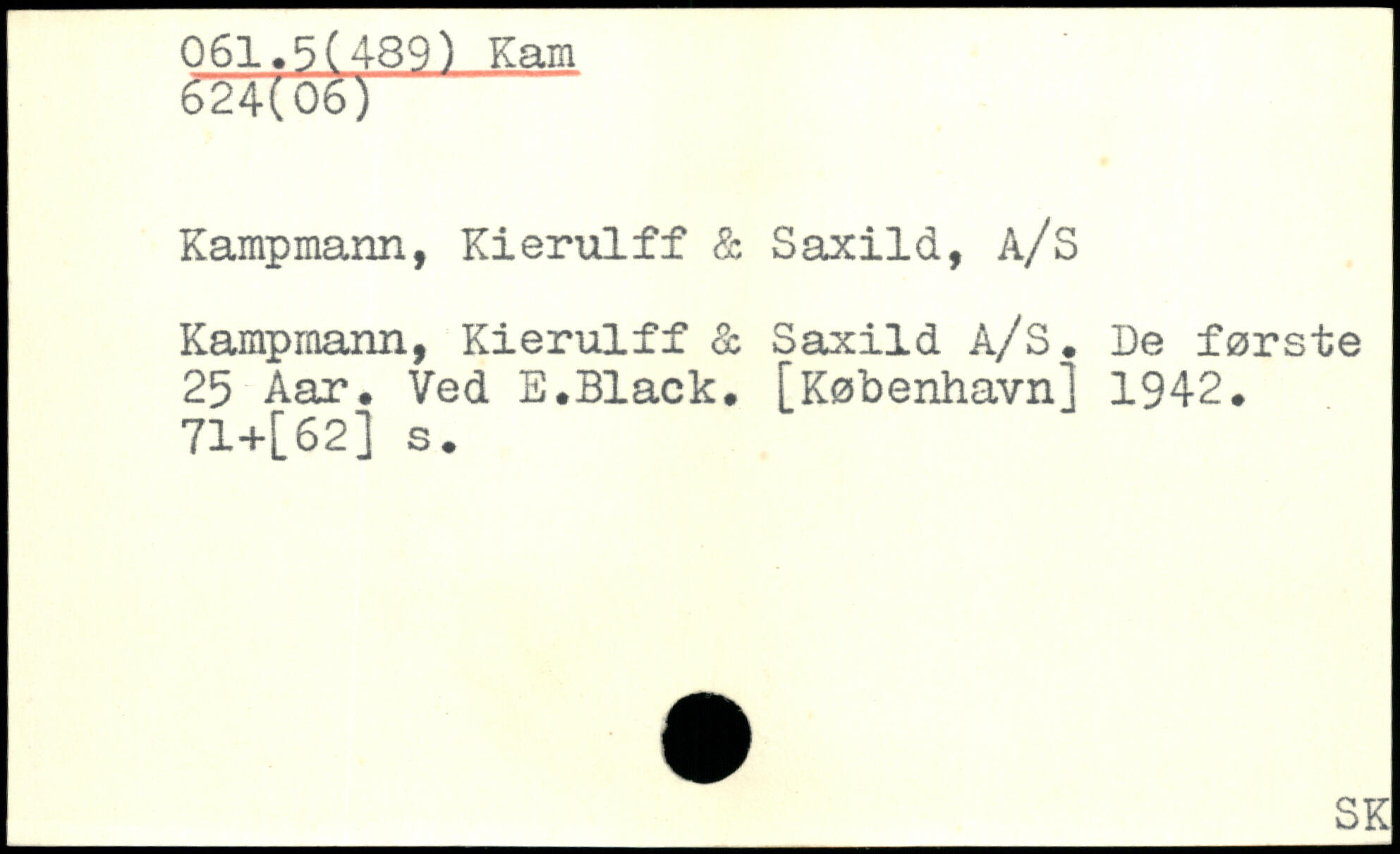Kampmann, Kierulff & Saxild, A/S Kampmann, Kierulff & Saxild A/S. De første 25 Aar. Ved E.Black.