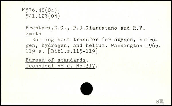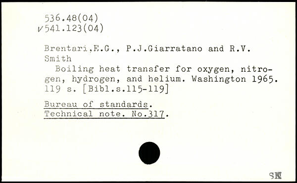 Brentari ,PJ .G. , P. J .Giarratano and R.V. Smith Boiling heat transfer for oxygen, nitrogen, hydrogen, and helium.