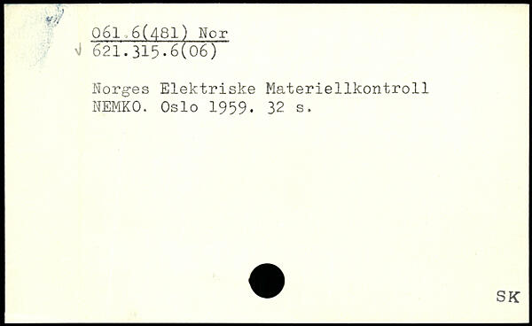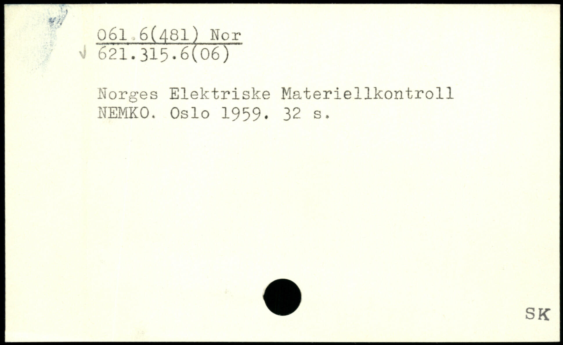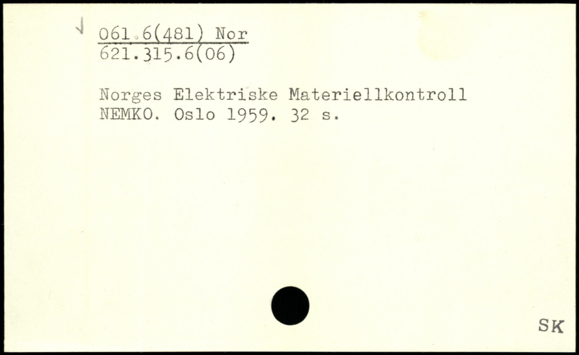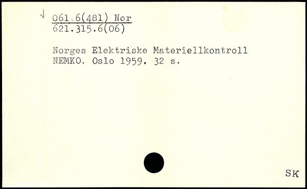 Norges Elektriske Materiellkontroll NEMKO. Oslo 1959.