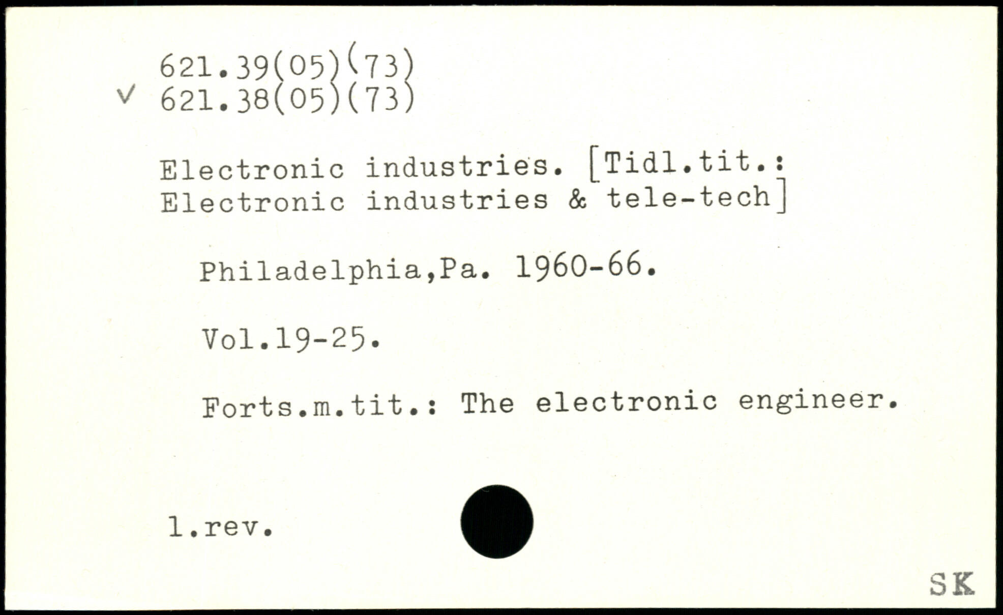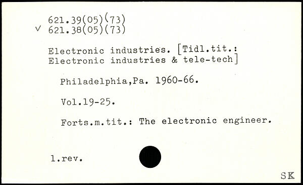 Electronic industries. [Tidl.tit.s Electronic industries & tele-tech] Philadelphia,Pa. 1960-66.