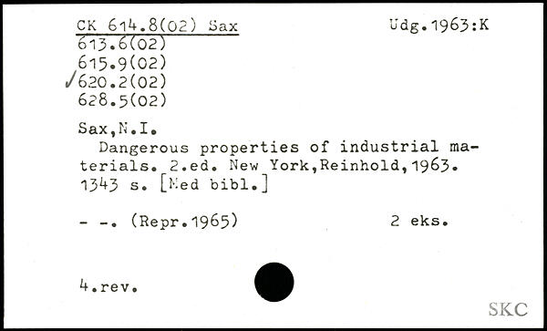 UDK: 614.8(02) Sax, 013.6(02), 615.9(02), 620.2(02), 628.5(02)