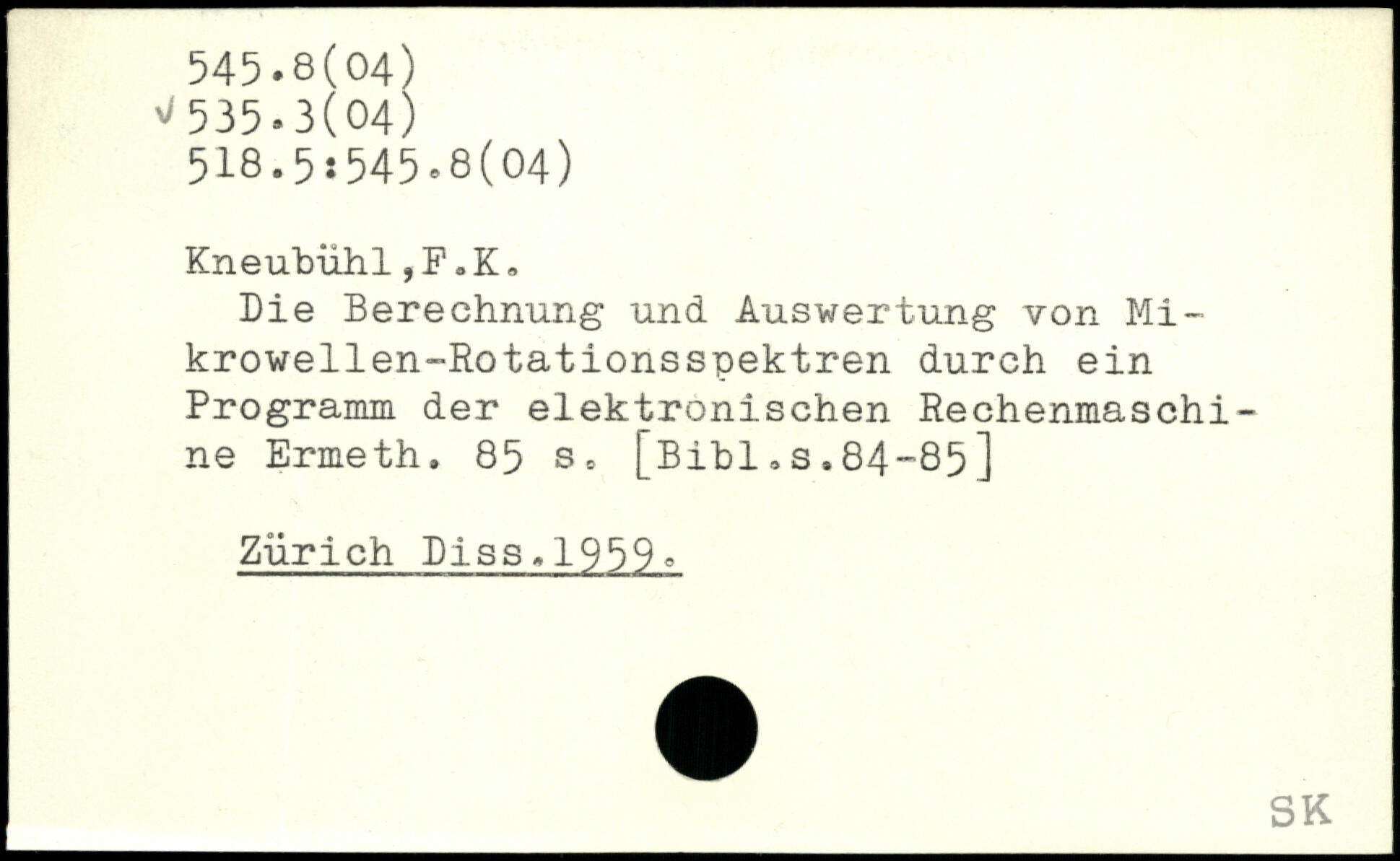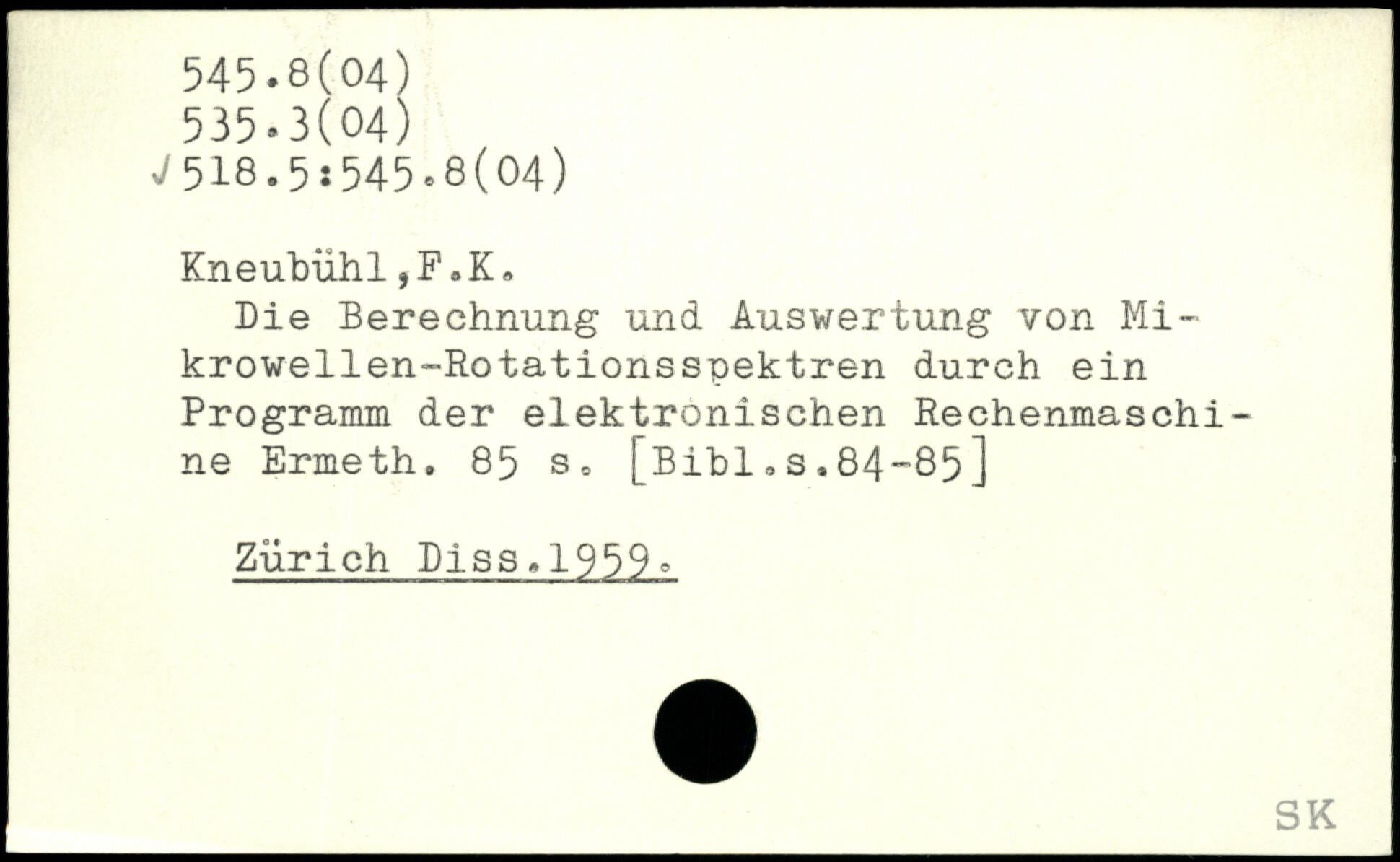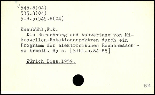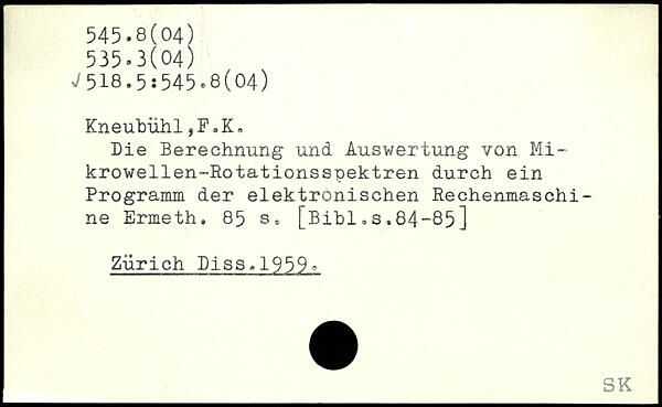 Die Berechnung und Auswertung von Mi-krowellen-Rotationsspektren durch ein Programm der elektronischen Rechenmaschine Ermeth.
