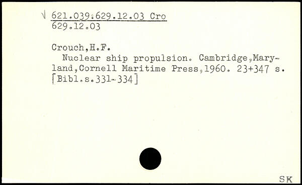 Nuclear ship propulsion, CambridgeyMaryland, Cornell Maritime Press,1960, 23+347 s. fBibl.s.331-334]