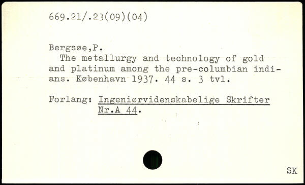 The metallurgy and technology of gold and platinum among the pre-Columbian indi-ans.