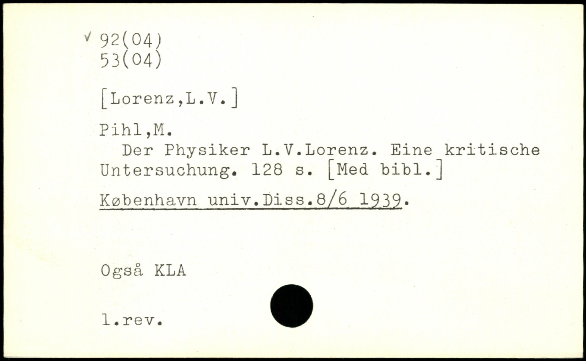 Der Physiker L.V.Lorenz. Eine kritische Untersuchung.