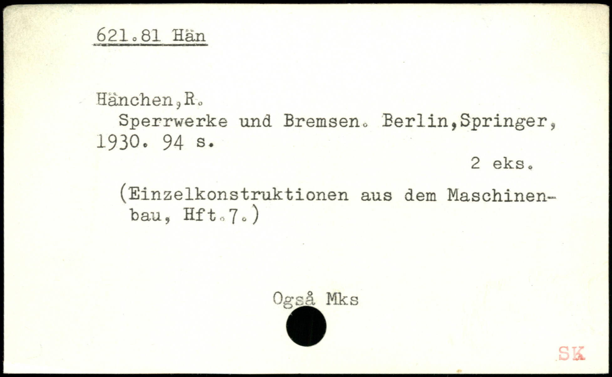 Sperrwerke und Bremseno Berlin,Springer, 1930. 94 s.
