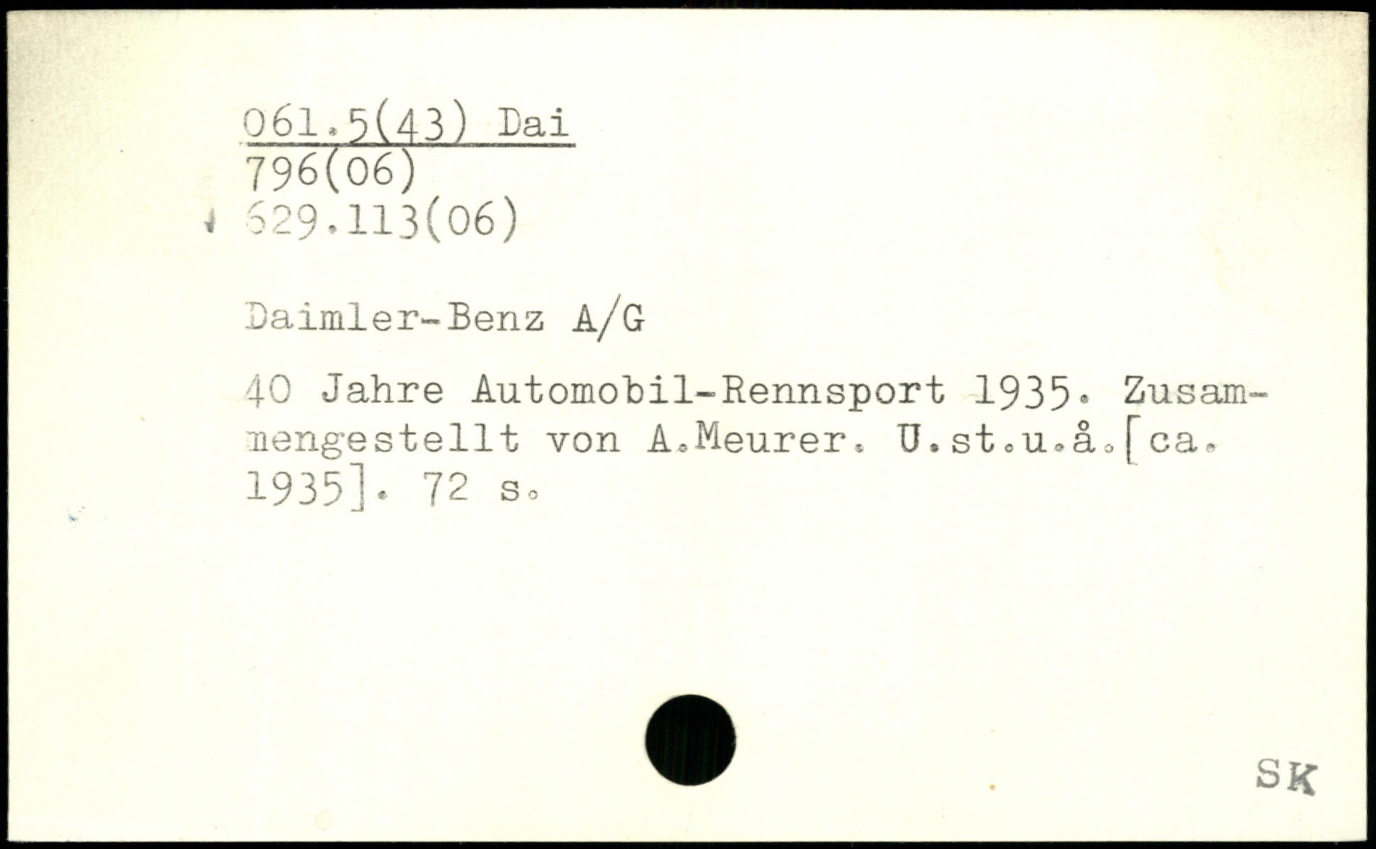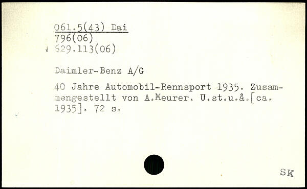 Daimler-Benz a/G 40 Jahre Automobil-Rennsport 1935, Zusammengestellt von AoMeurer, U. st ,u.åo [ca. 1935].