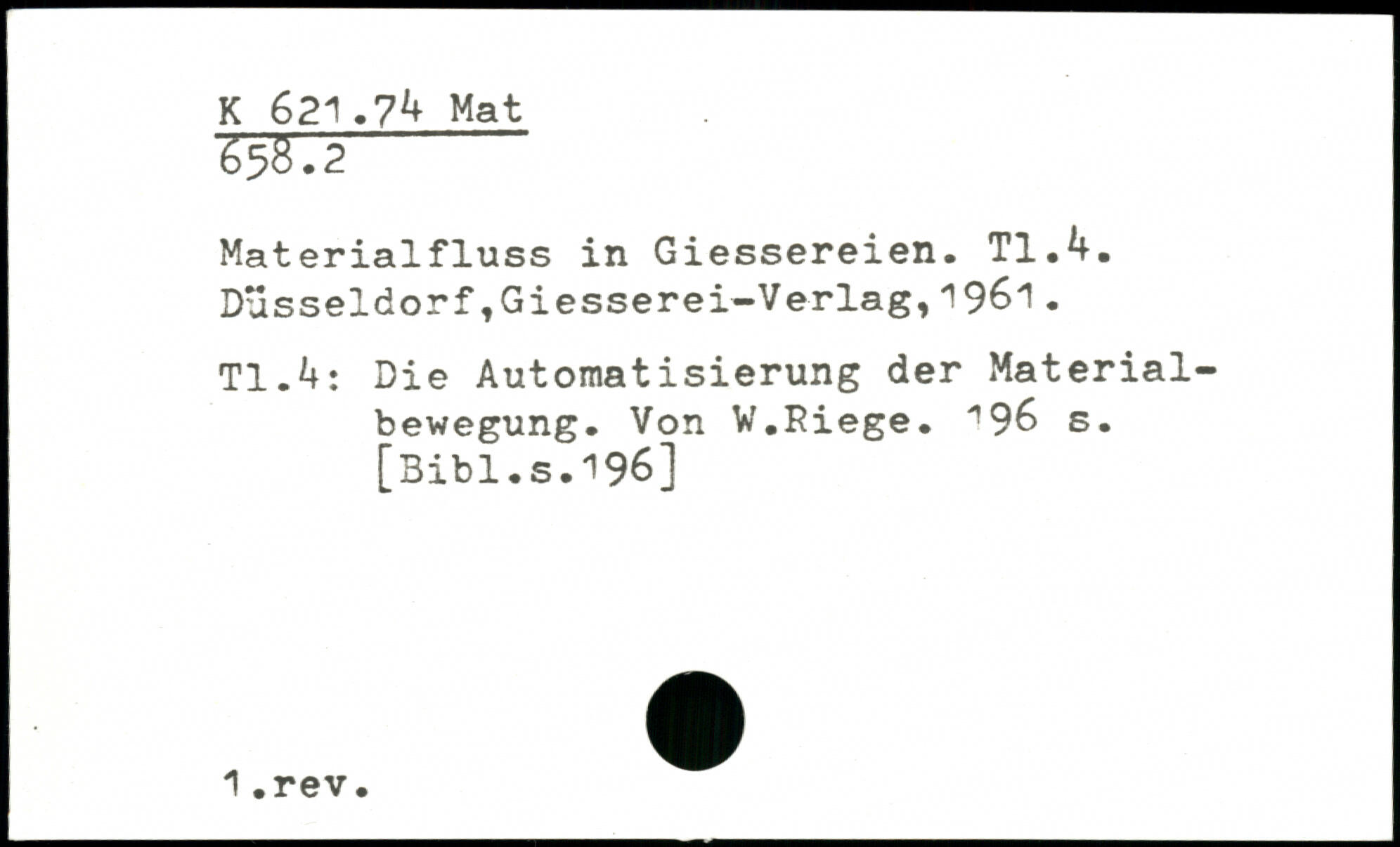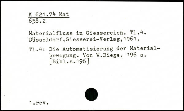 Materialfluss in Giessereien. TI.4.