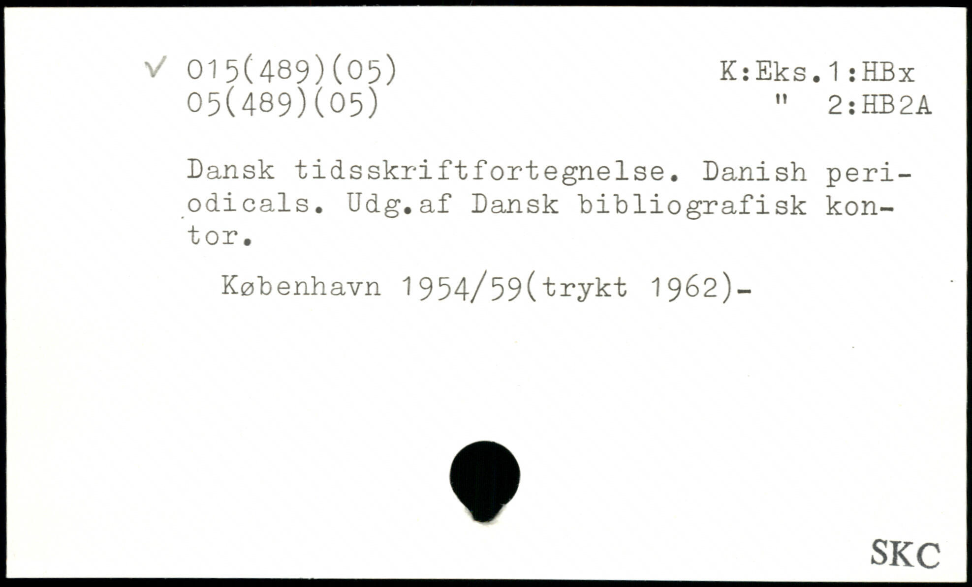 Dansk tidsskriftfortegnelse. Danish periodicals. Udg.af Dansk bibliografisk kontor.