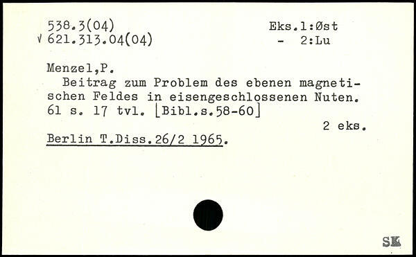 Beitrag zum Problem des ebenen magnetischen Feldes in eisengeschlossenen Nuten.