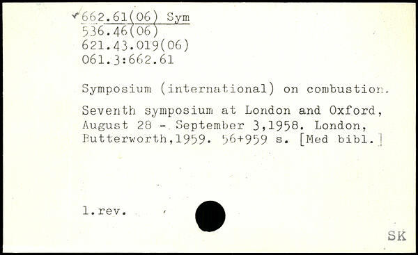 Symposium (international) on combustion. Seventh symposium at London and Oxford, August 28 - September 3,1956.
