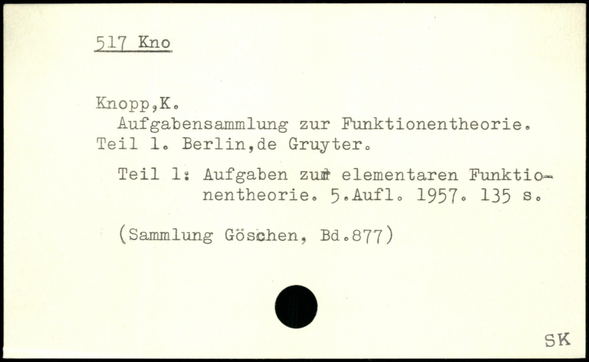 Aufgabensammlung zur Funktionentheorie. Teil 1. Berlin,de Gruyter,, Teil ls Aufgaben zuat elementaren Funktio— nentheorie. 5 ,Auf1, 1957