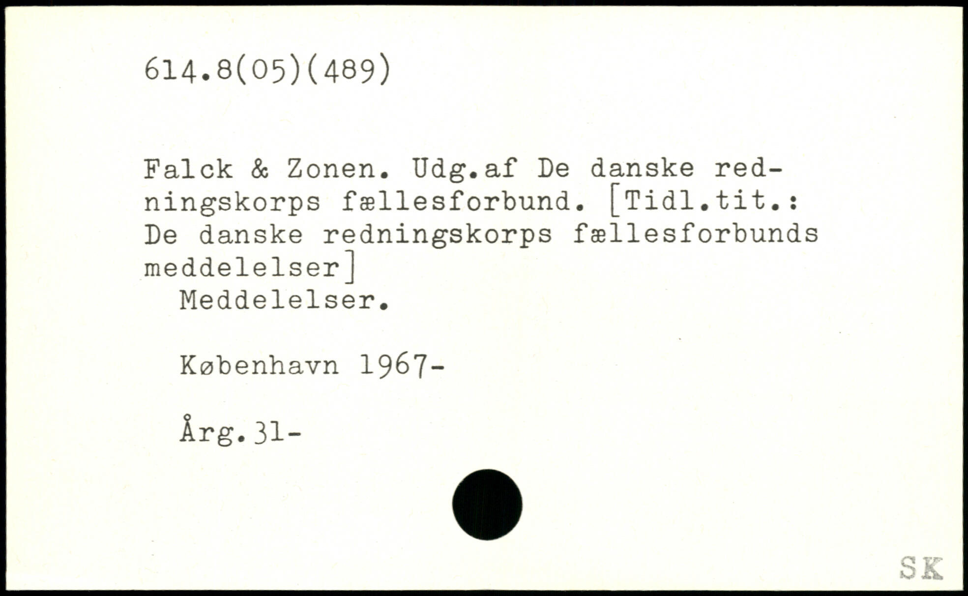 Falck & Zonen. Udg.af De danske redningskorps fællesforbund. [Tidl.tit.: De danske redningskorps fællesforbunds meddelelser] Meddelelser.