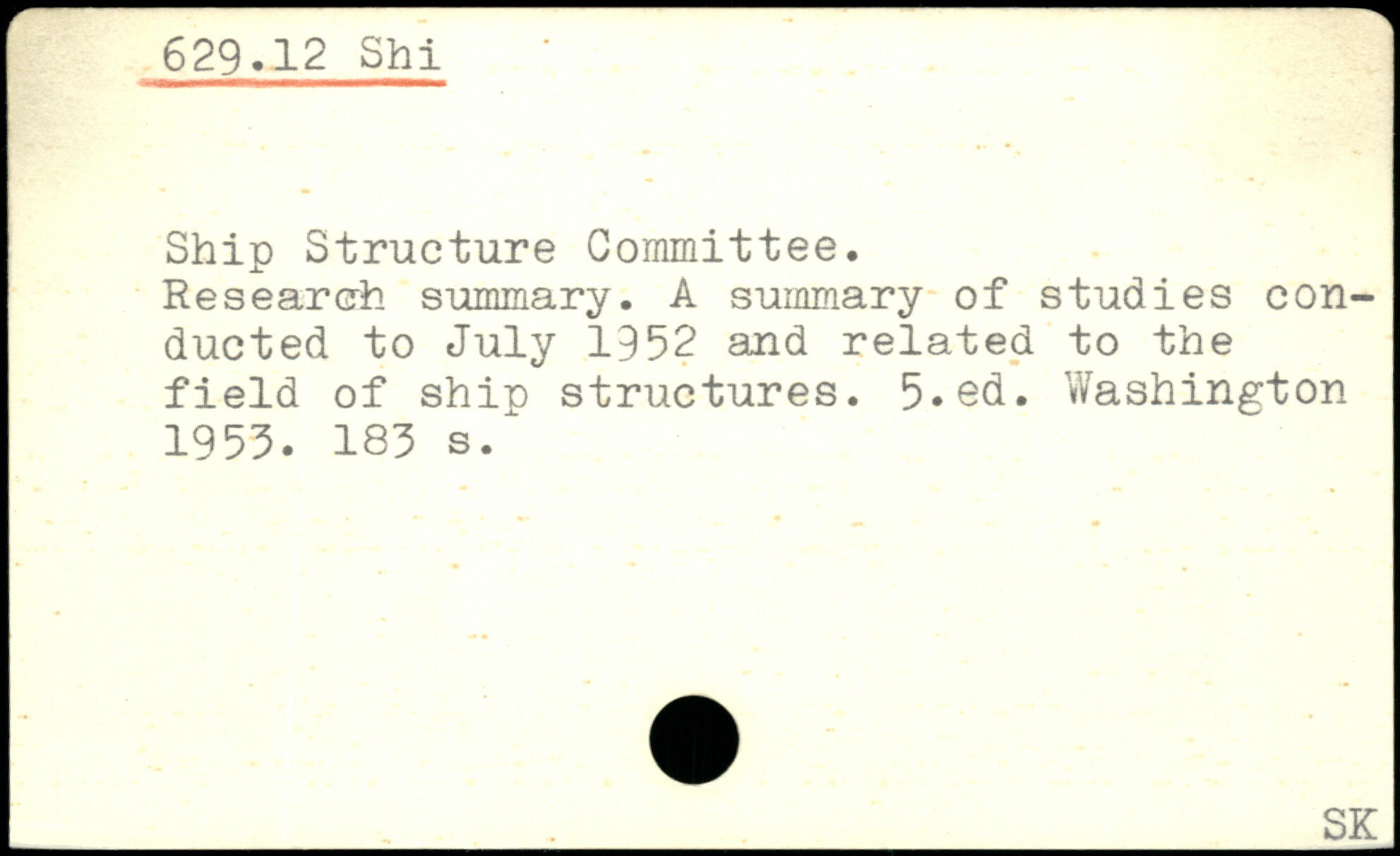 Ship Structure Committee. Research summary. A summary of studies conducted to July 1952 and related to the field of ship structures.