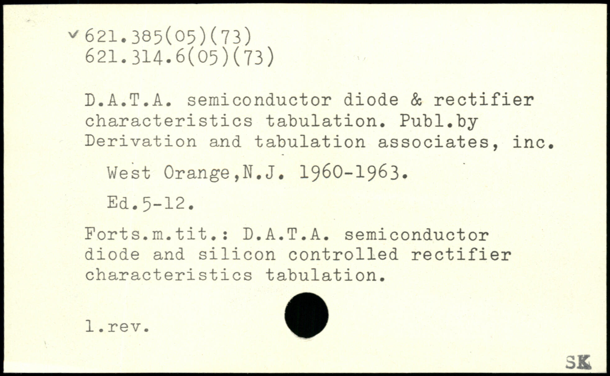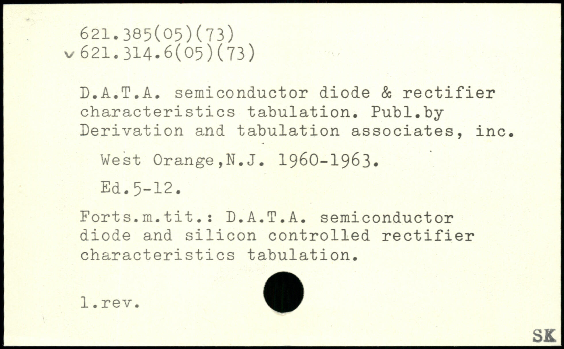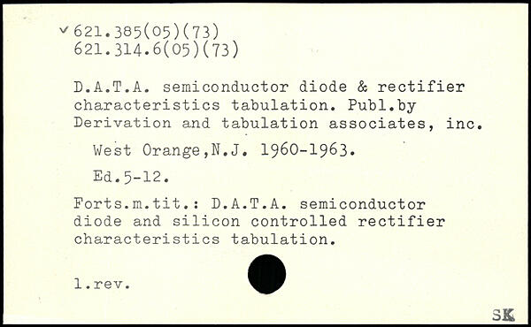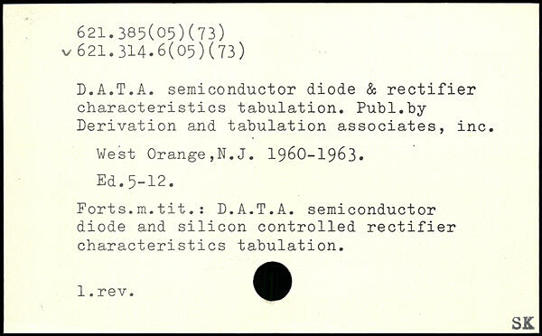 D.A.T.A. semiconductor diode & rectifier characteristics tabulation.