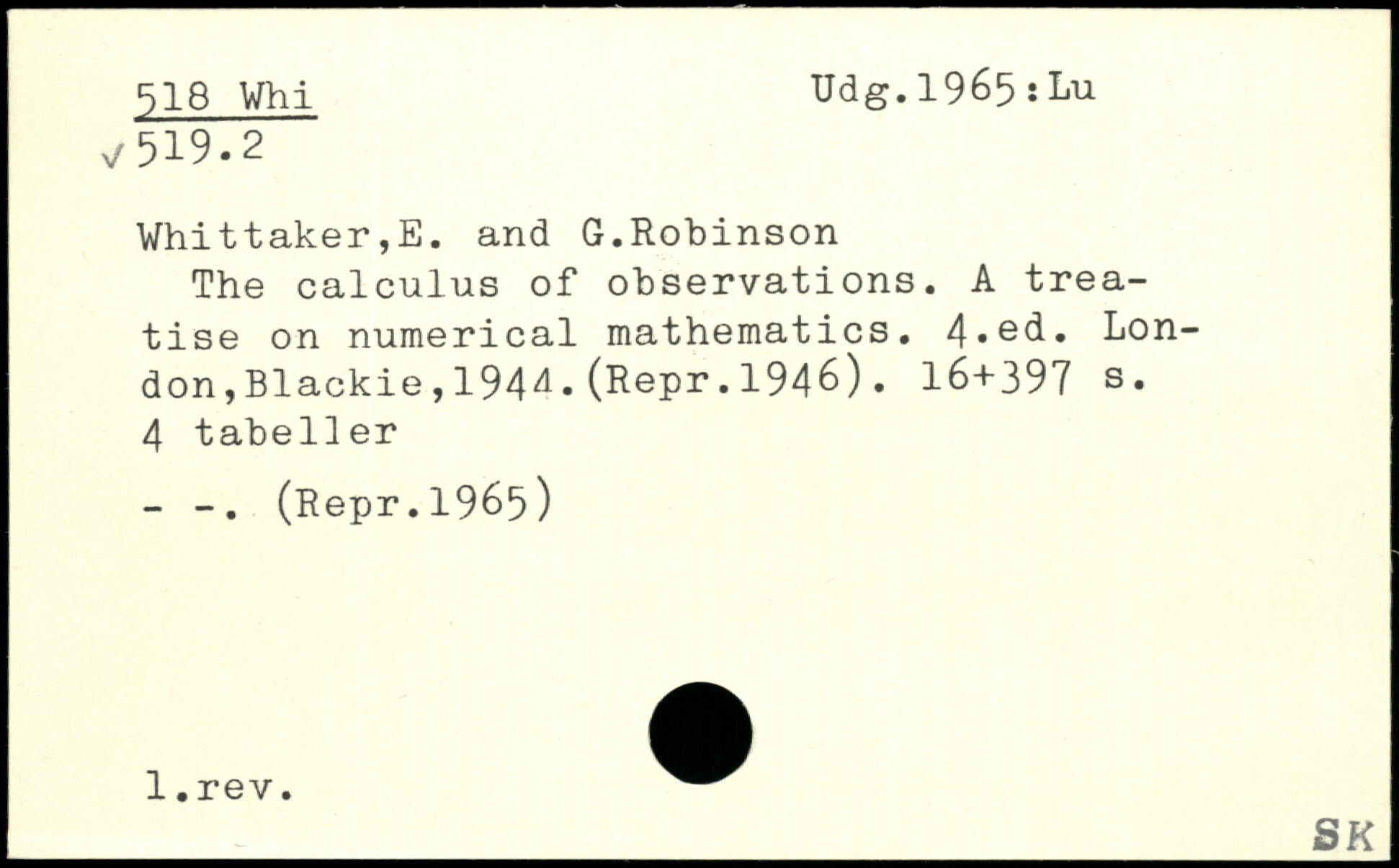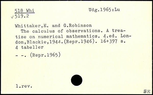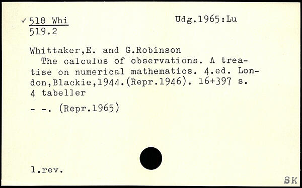 The calculus of observations. A treatise on numerical mathematics. 4,e(l, London ,Blackie,194^.(Repn.1946).