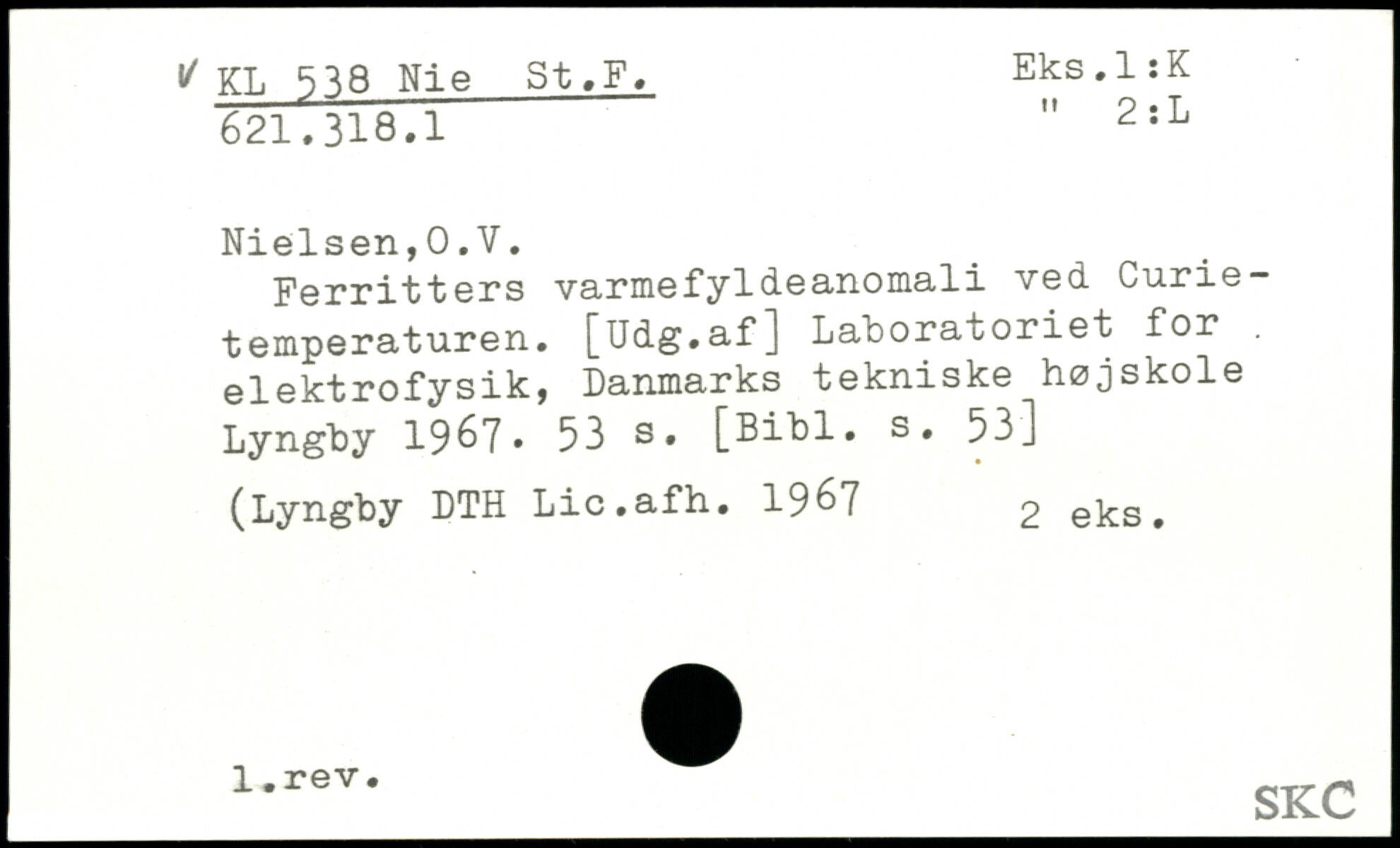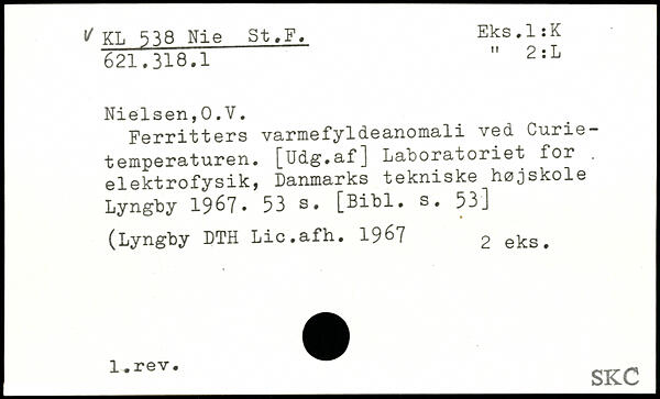 Ferritters varmefyldeanomali ved Curietemperaturen. [Udg.af] Laboratoriet for. elektrofysik, Danmarks tekniske højskole Lyngby 1967