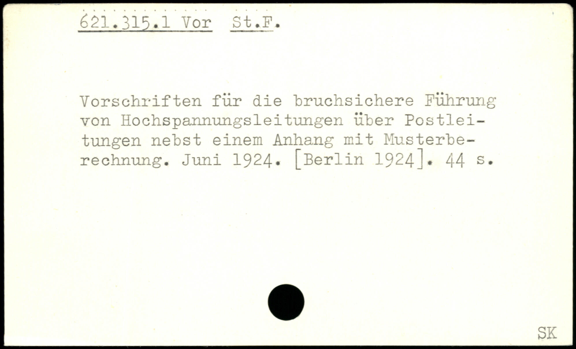 Vorschriften für die hruchsichere Führung von Hochspannungsleitungen über Postleitungen nebst einem Anhang mit Musterberechnung. Juni 1924.
