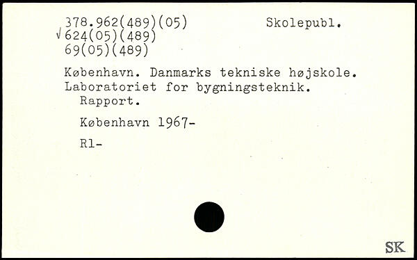 København. Danmarks tekniske højskole. Laboratoriet for bygningsteknik. Rapport.