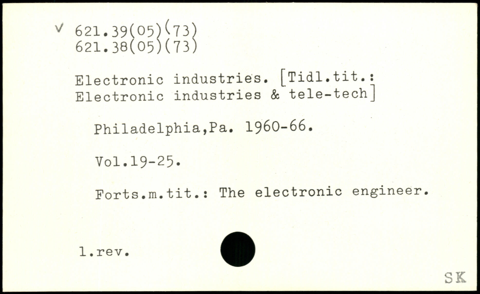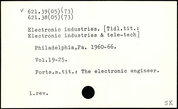 Electronic industries. [Tidl.tit.: Electronic industries & tele-tech] Philadelphia,Pa. 1960-66.