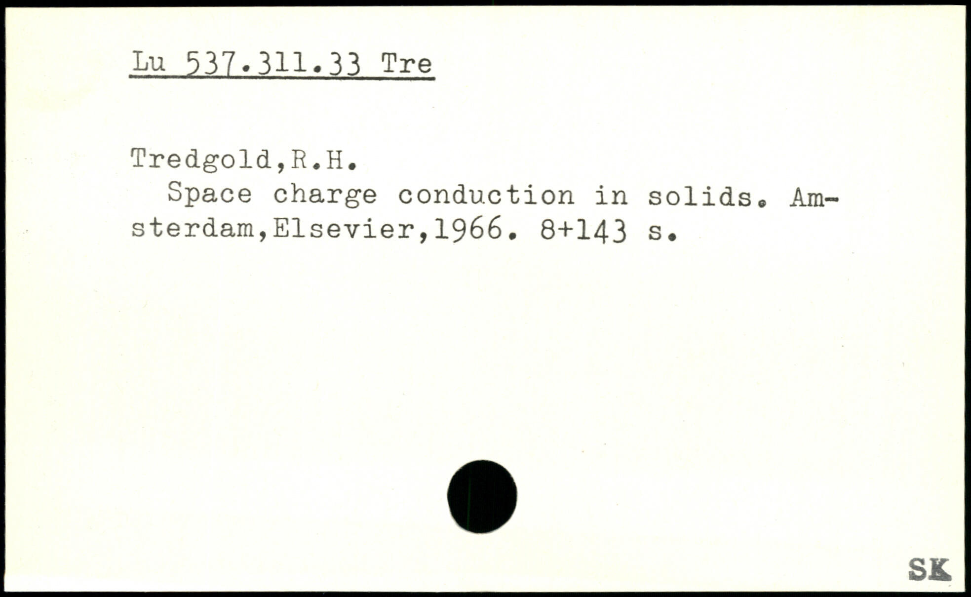 Space charge conduction in solids.