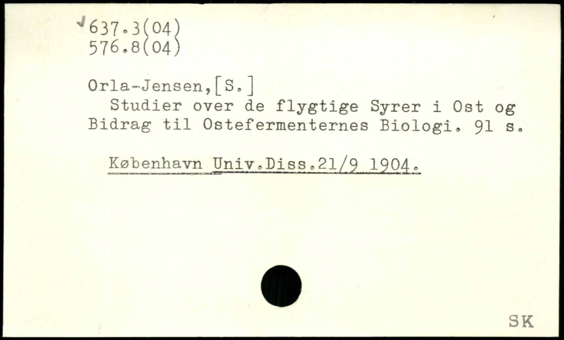 Orla-Jensen,[S, ] Studier over de flygtige Syrer i Ost og Bidrag til Ostefermenternes Biologi, 9I s, København Univ0Diss,21/9 1904