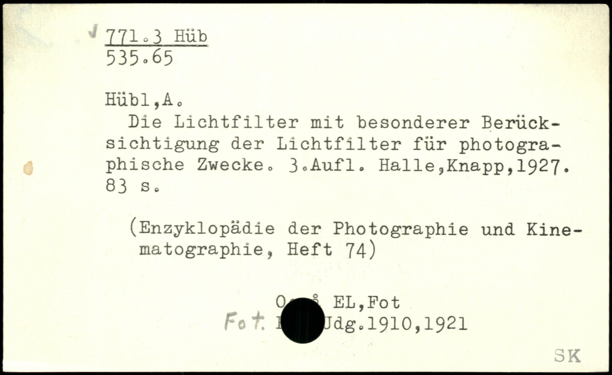 UDK: 771.3 Hüb, 535.65