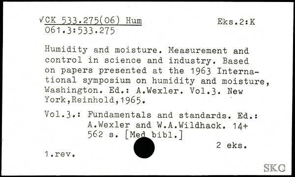 Humidity and moisture. Measurement and control in science and industry. Based on papers presented at the 1963 International symposium on humidity and moisture, Washington. Ed.: A.Wexler.