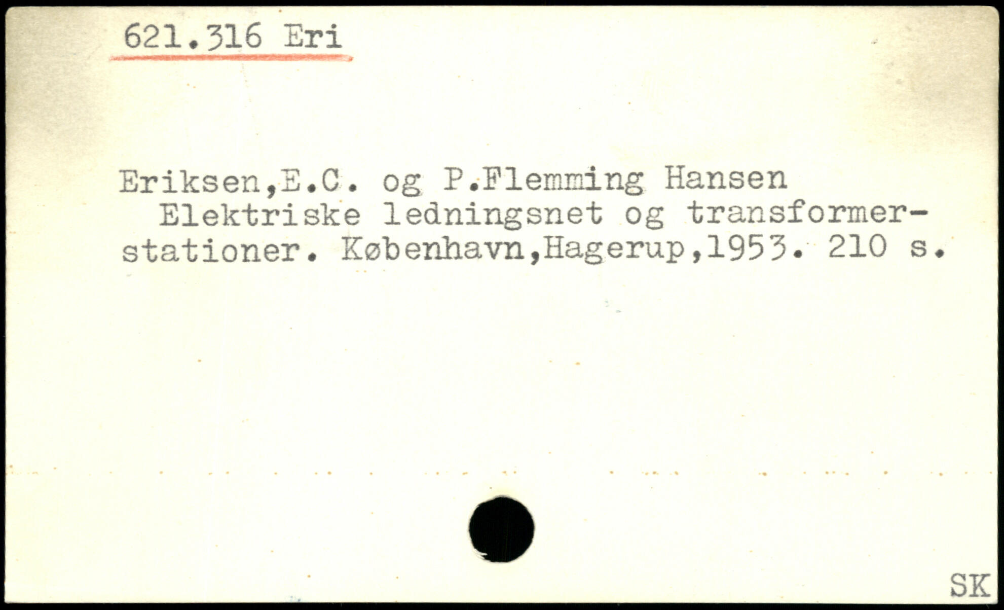 Eriksen,S.G. og P.Flemming Hansen Elektriske ledningsnet og transformerstationer.