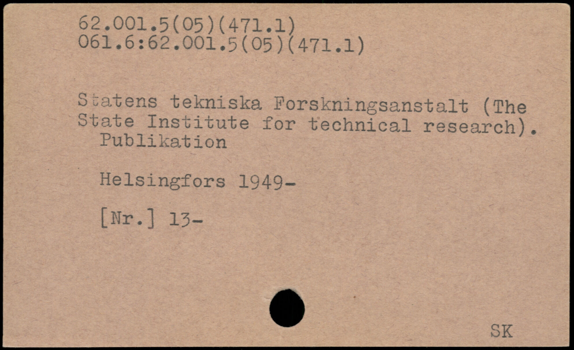 Scatens tekniska Forskningsanstalt (The State Institute for technical research). Publikation