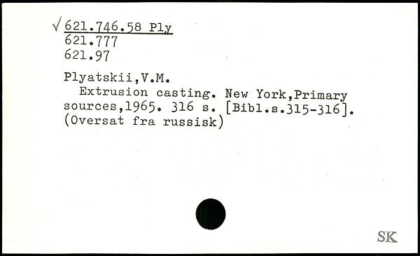 UDK: 621.746.58 Ply, 621.777, 621.97