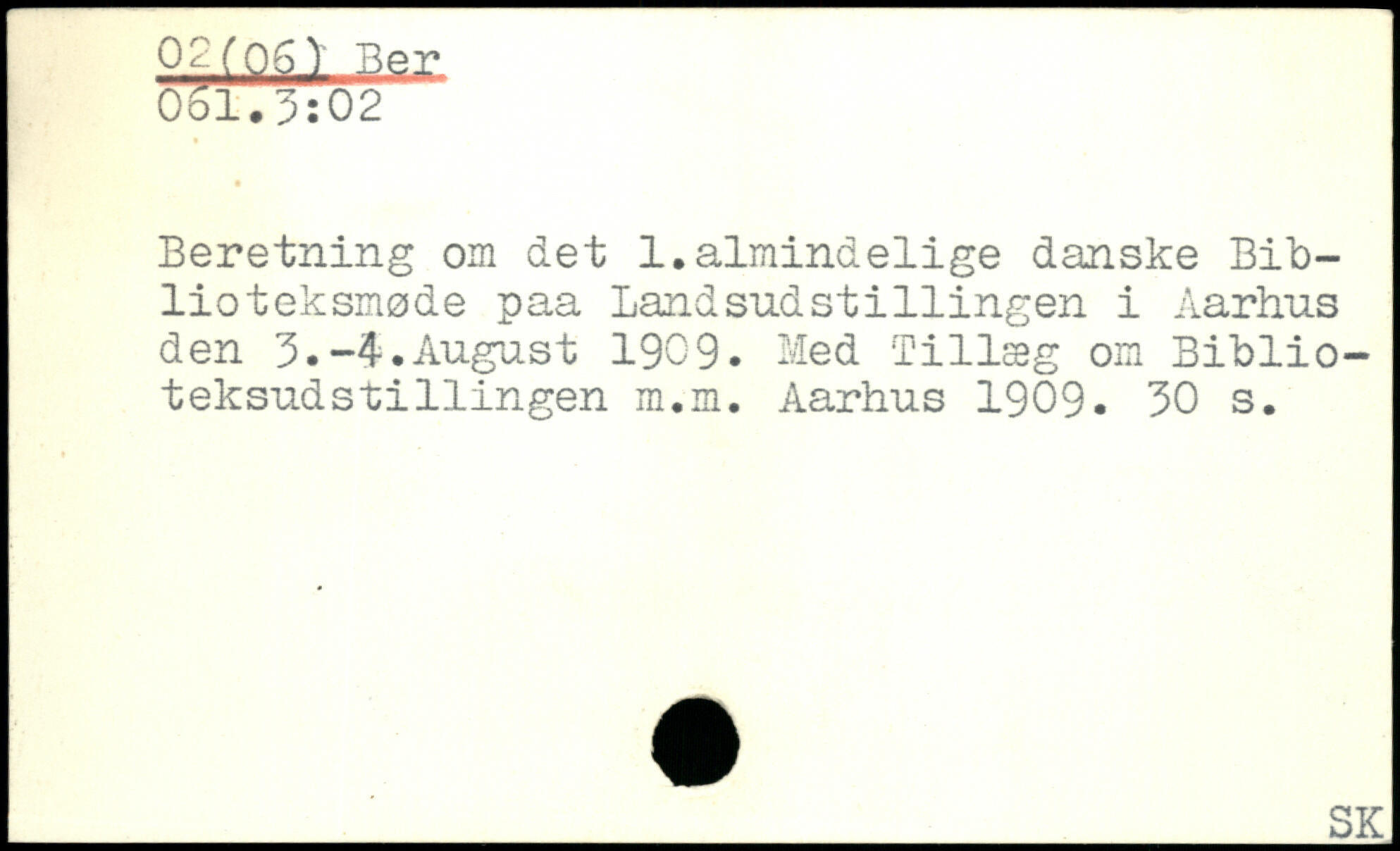 Beretning om det 1.almindelige danske Biblioteksmøde paa Landsudst1111ngen i Aarhus den 3.-4-.August 1909. Med Tillæg om Bibliotekar.! s ti liingen m.m.