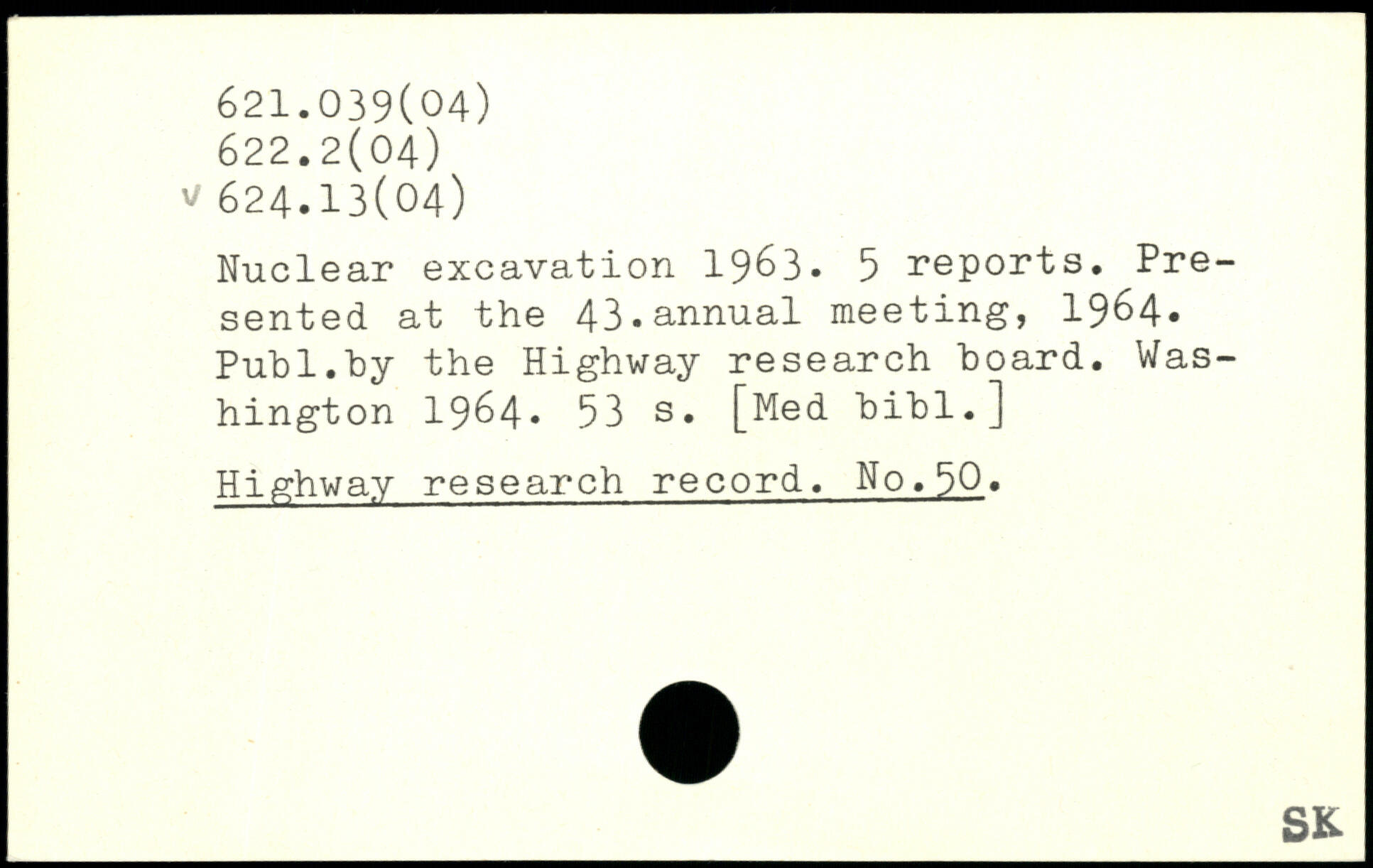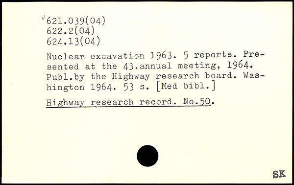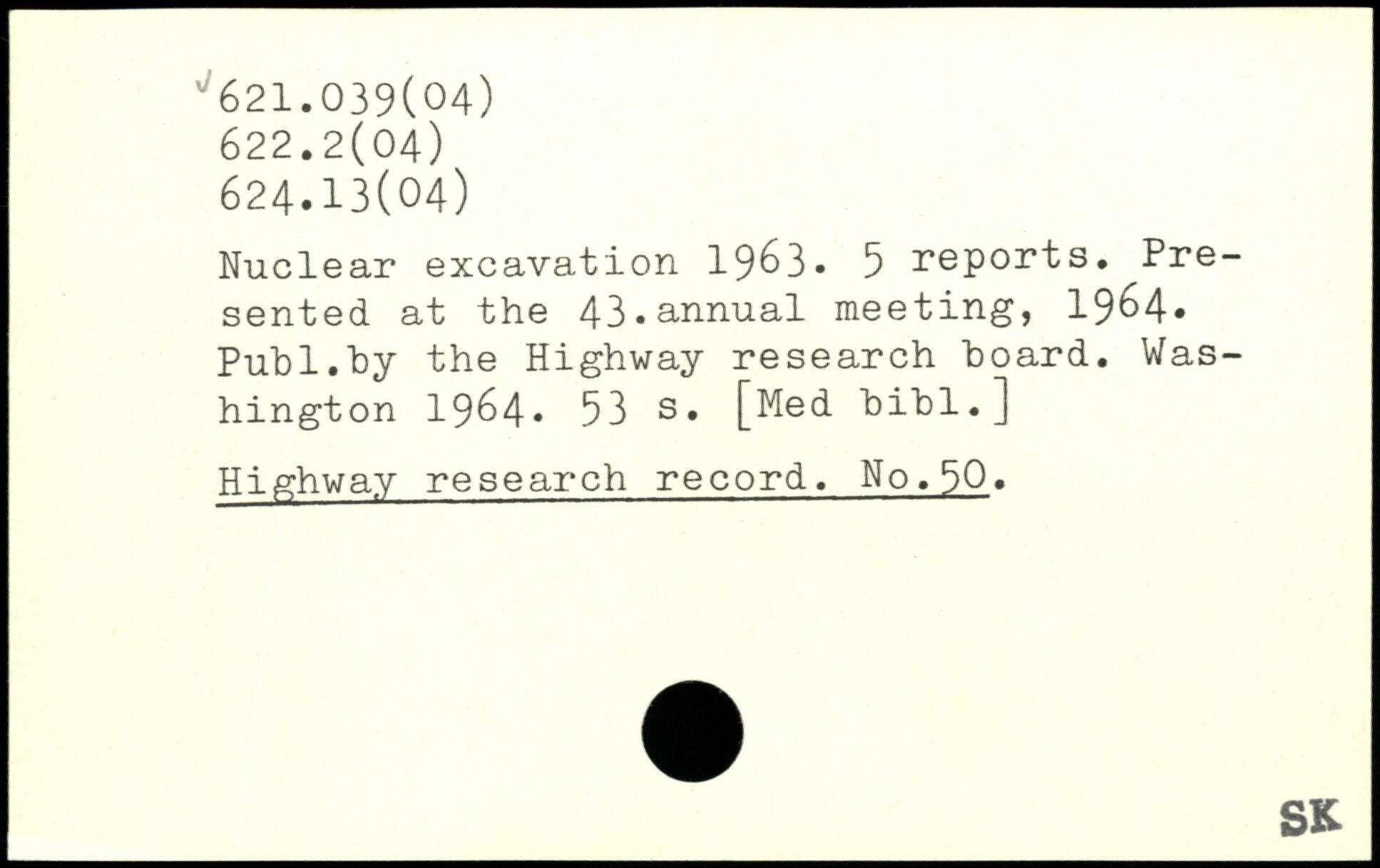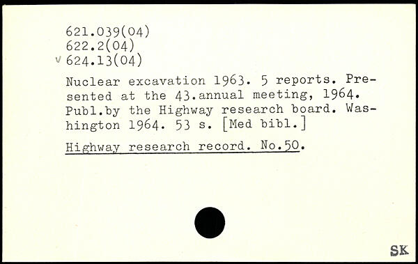 Nuclear excavation 1963, 5 reports. Presented at the 43.annual meeting, 19^4. Pub 1."by the Highway research board.