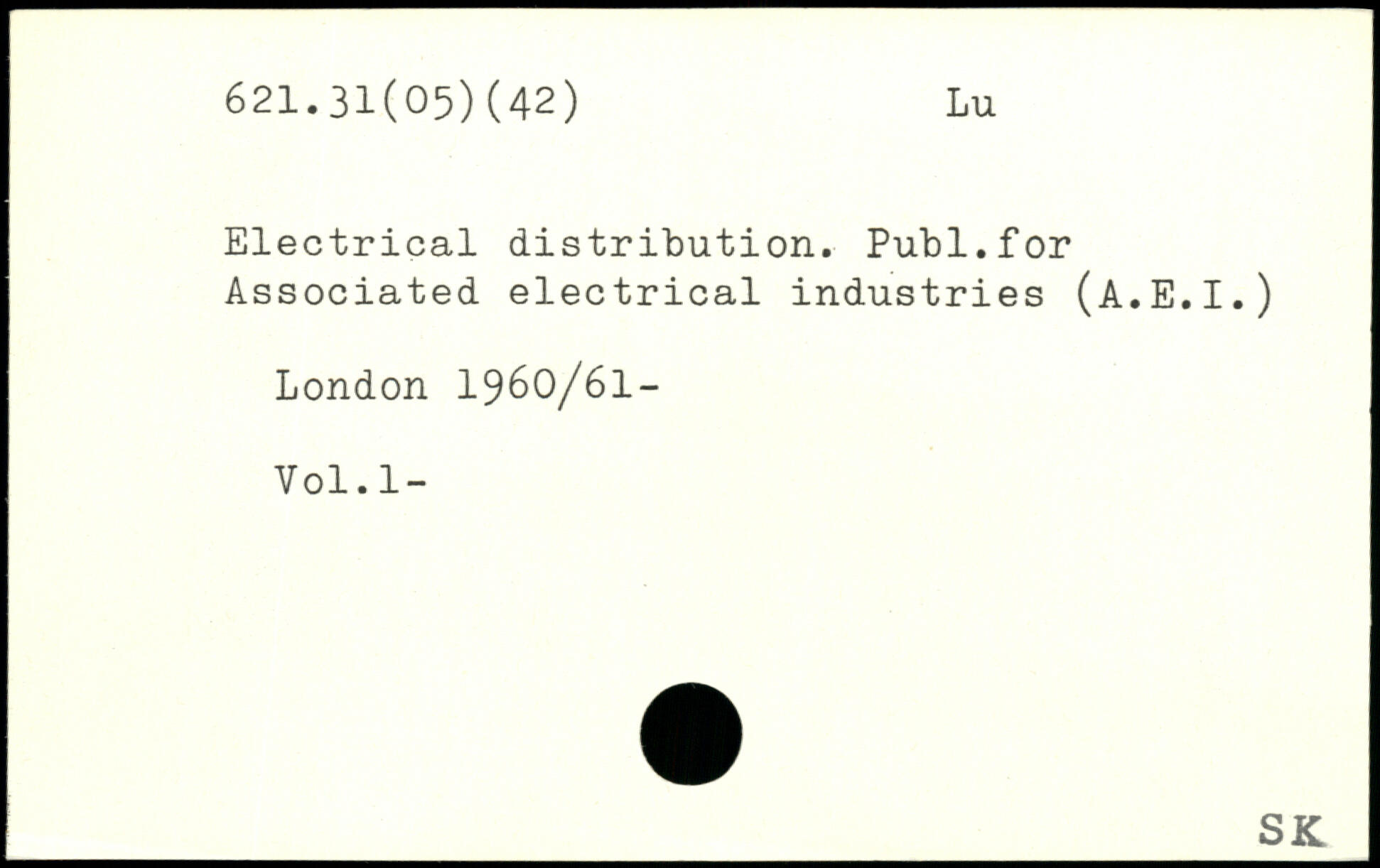 Electrical distribution. Publ.for Associated electrical industries