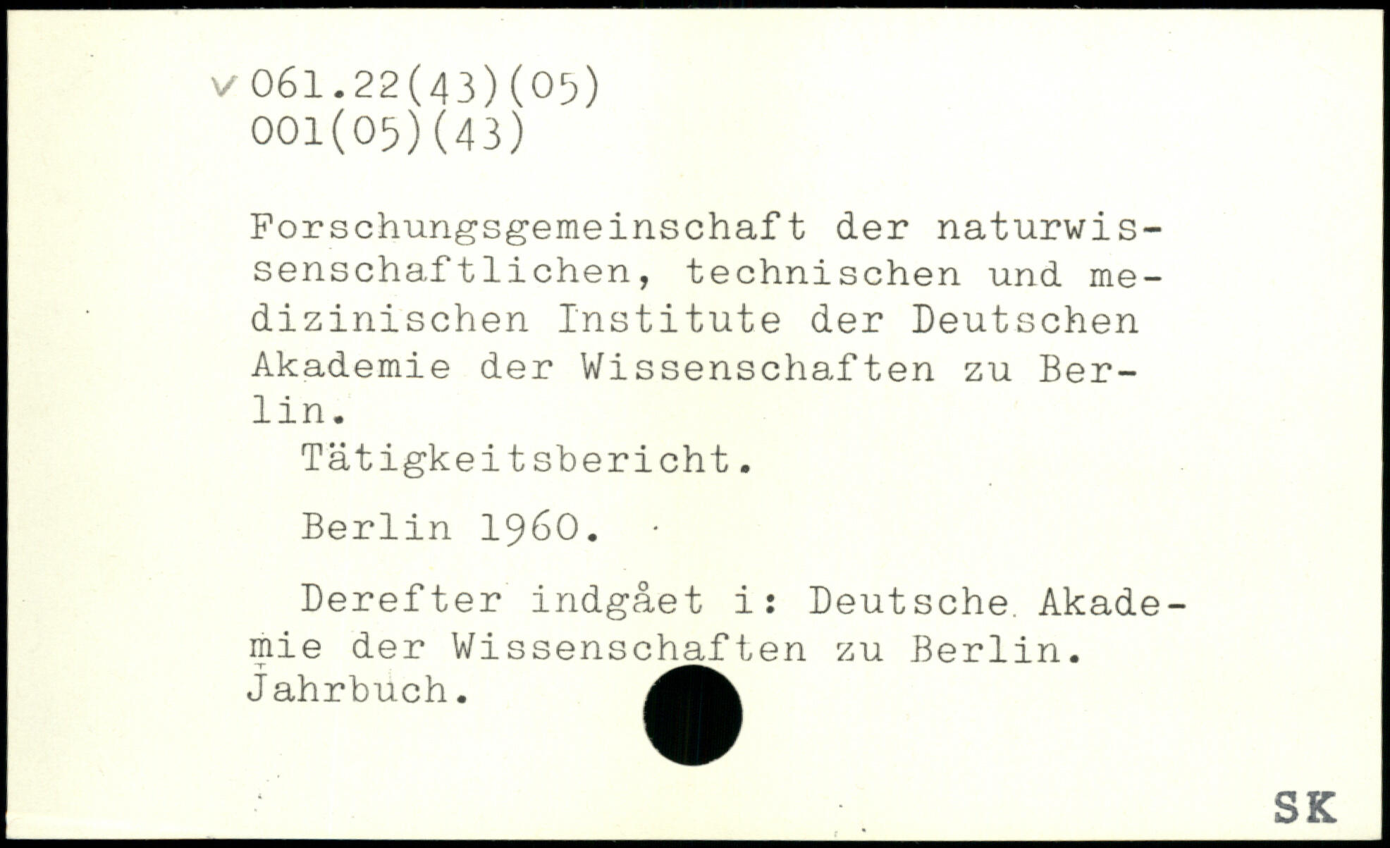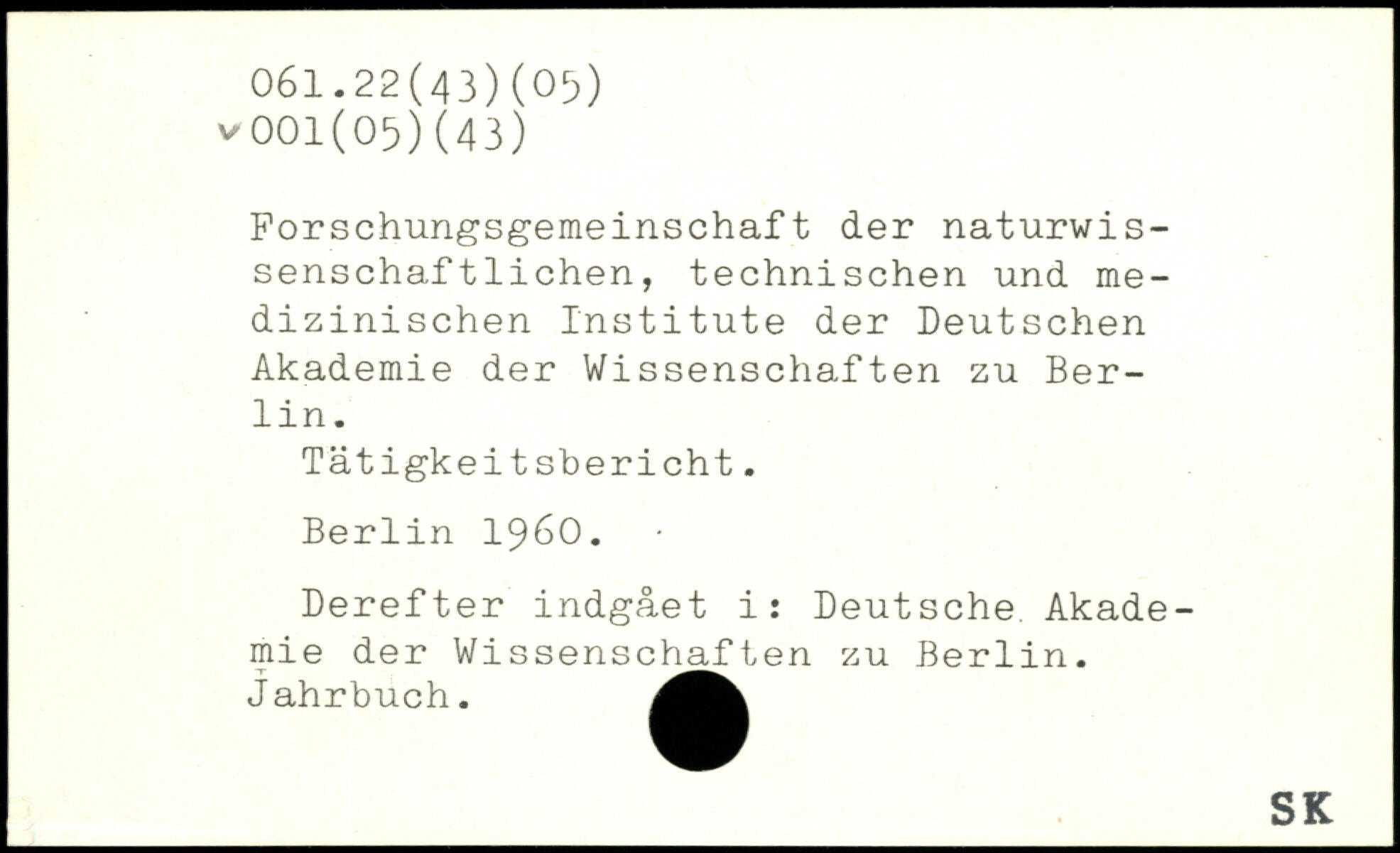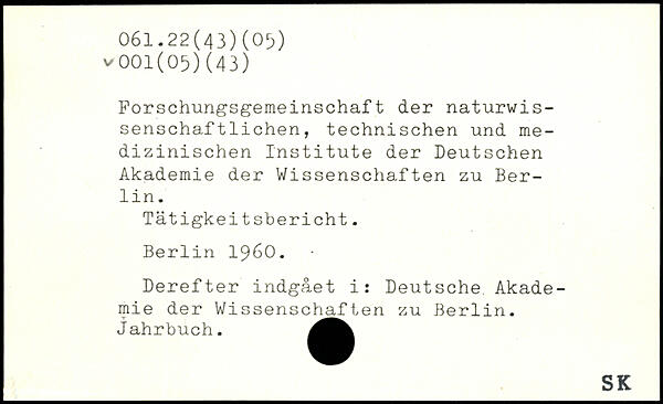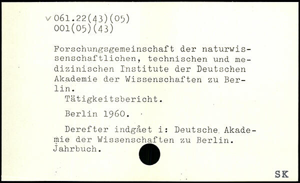 Forschungsgemeinschaft der naturwis-senschaftlichen, technischen und medizinischen Institute der Deutschen Akademie der Wissenschaften zu Berlin. Tätigkeitsbericht.