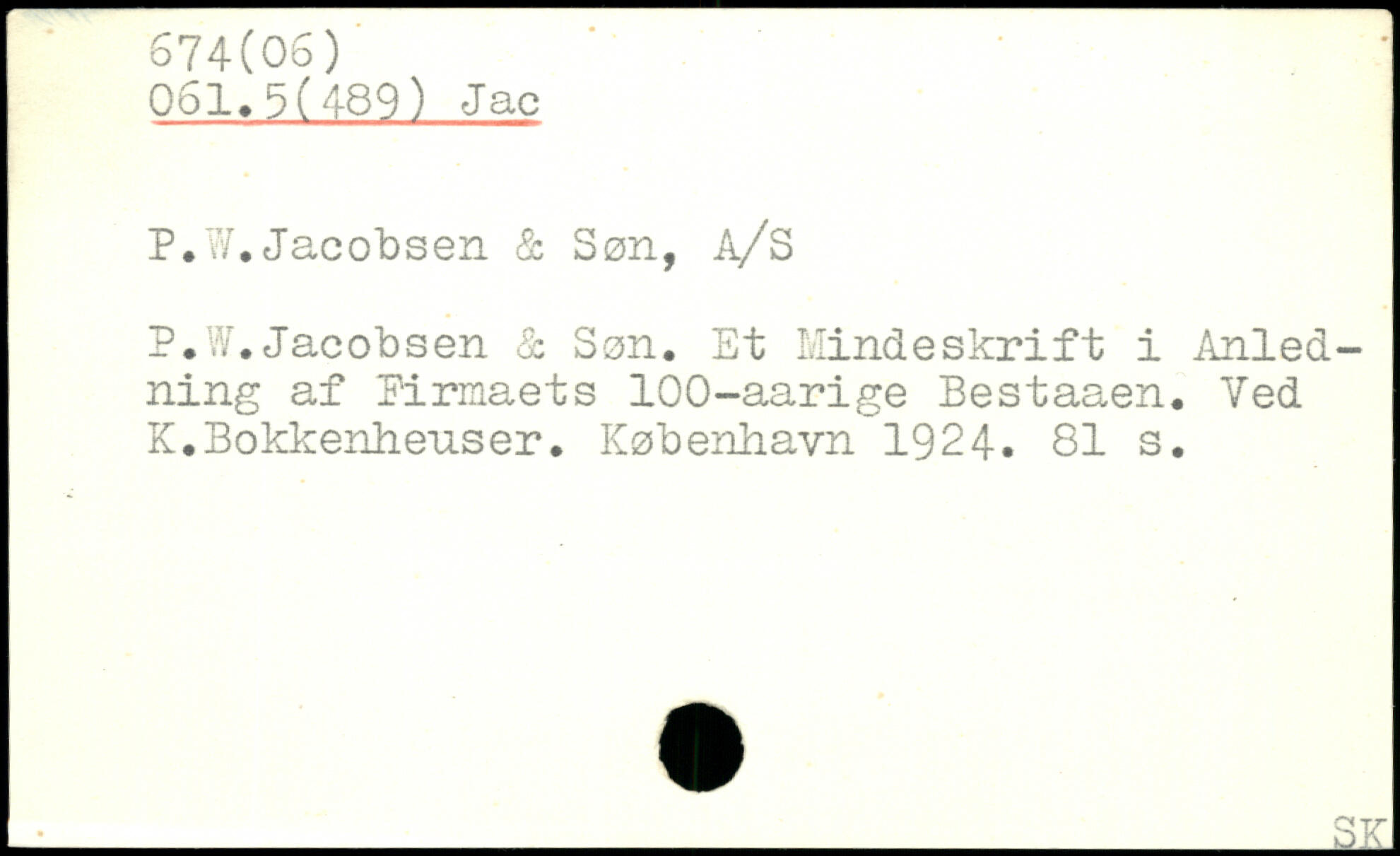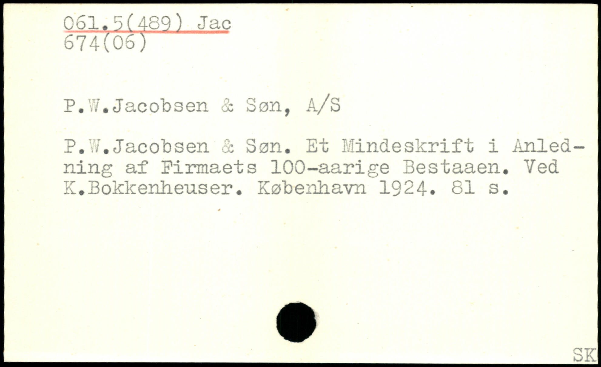 P.V.Jacobsen & Søn. Et Mindeskrift i Anledning af Firmaets 100-aarige Bestaaen. Ved K.Bokkenheuser.