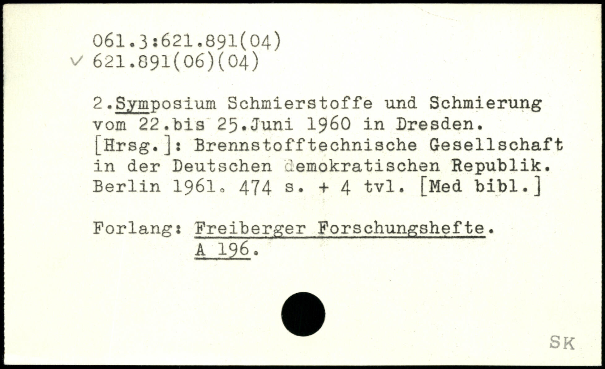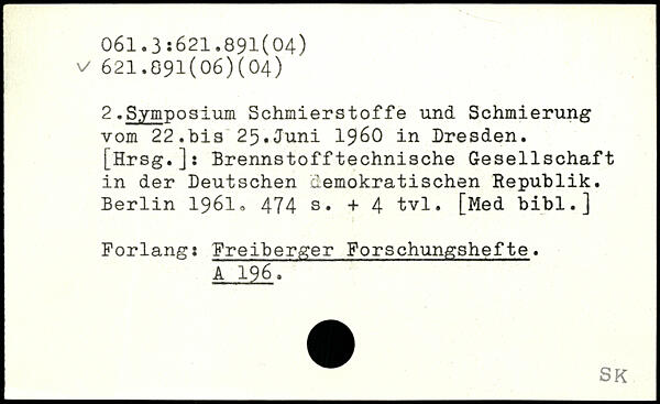 2.Symposium Schmierstoffe und Schmierung vom 22.bis 25.Juni 1960 in Dresden. [Hrsg.]: Brennstofftechnische Gesellschaft in der Deutschen demokratischen Republik.