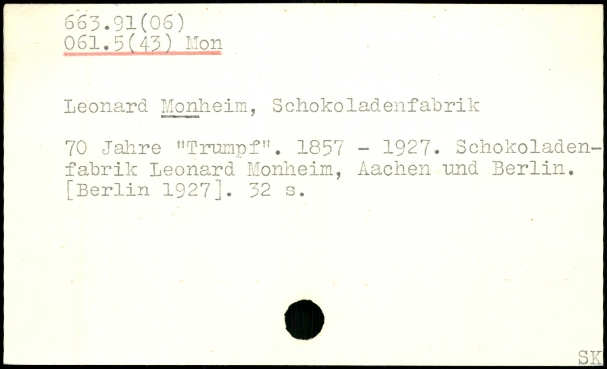 Leonard Mortheim, Schokoladenfabrik 70 Jahre ”Trumpf”. 1857 - 1927. Schokoladenfabrik Leonard Monheim, Aachen und Berlin.