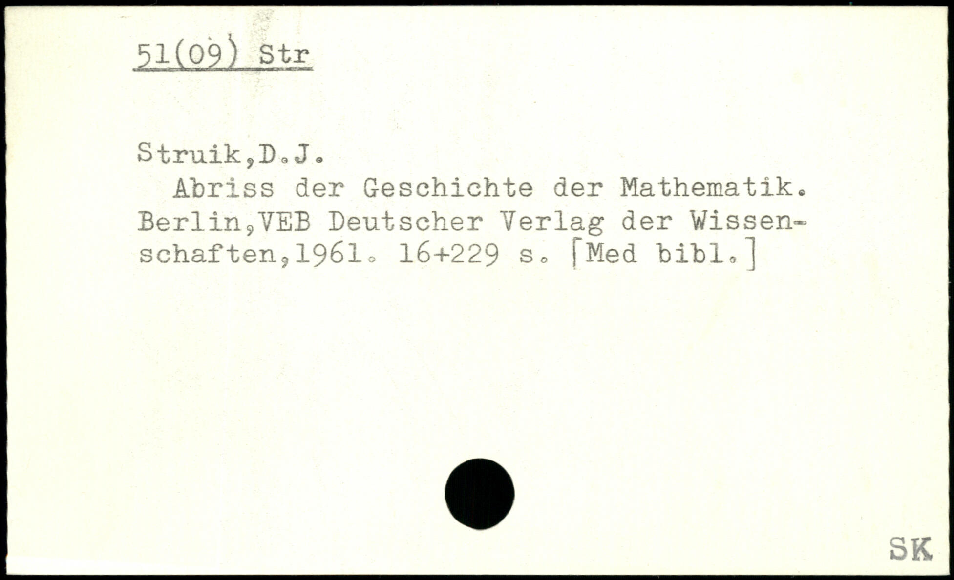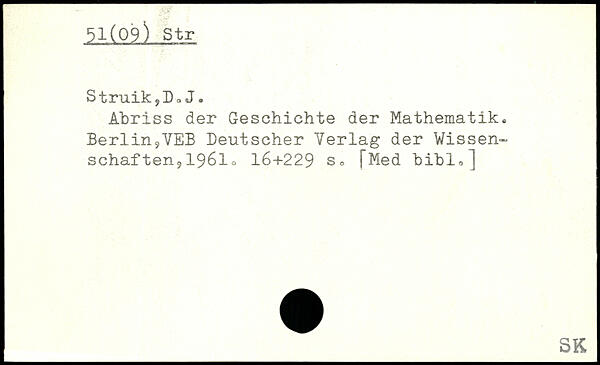 Abriss der Geschichte der Mathematik, Berlin9VEB Deutscher Verlag der Wissenschaften, 1961 o 16+229 j"Med bibl0]