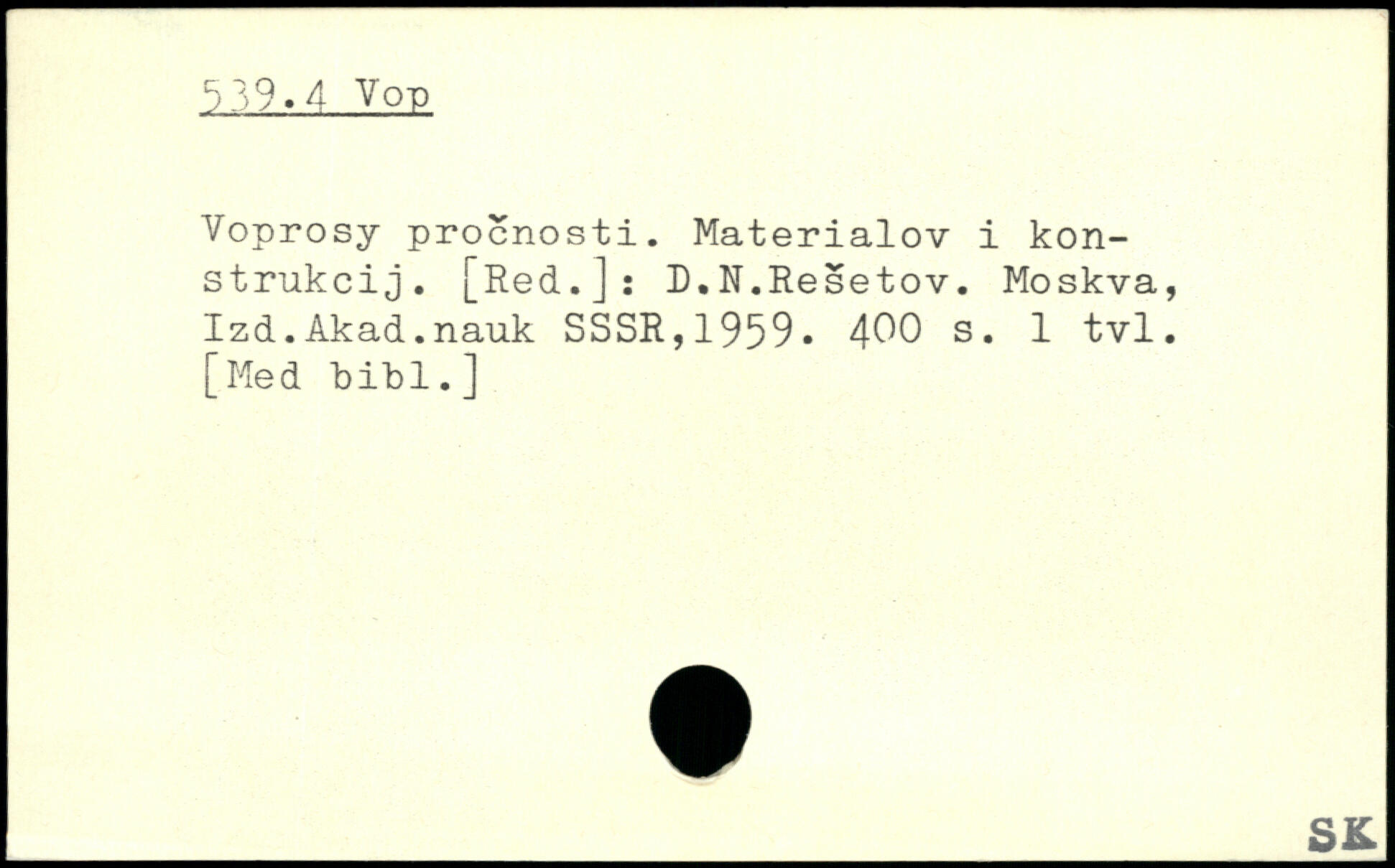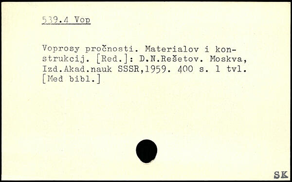 Voprosy procnosti. Materialov i kon-strukcij. [Red.J: D.N.Resetov. Moskva, Izd.Akad.nauk SSSR,1959. 4^
